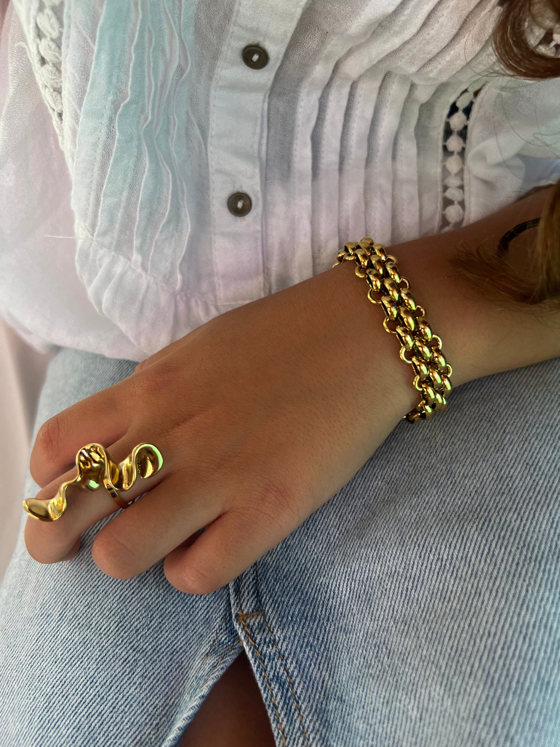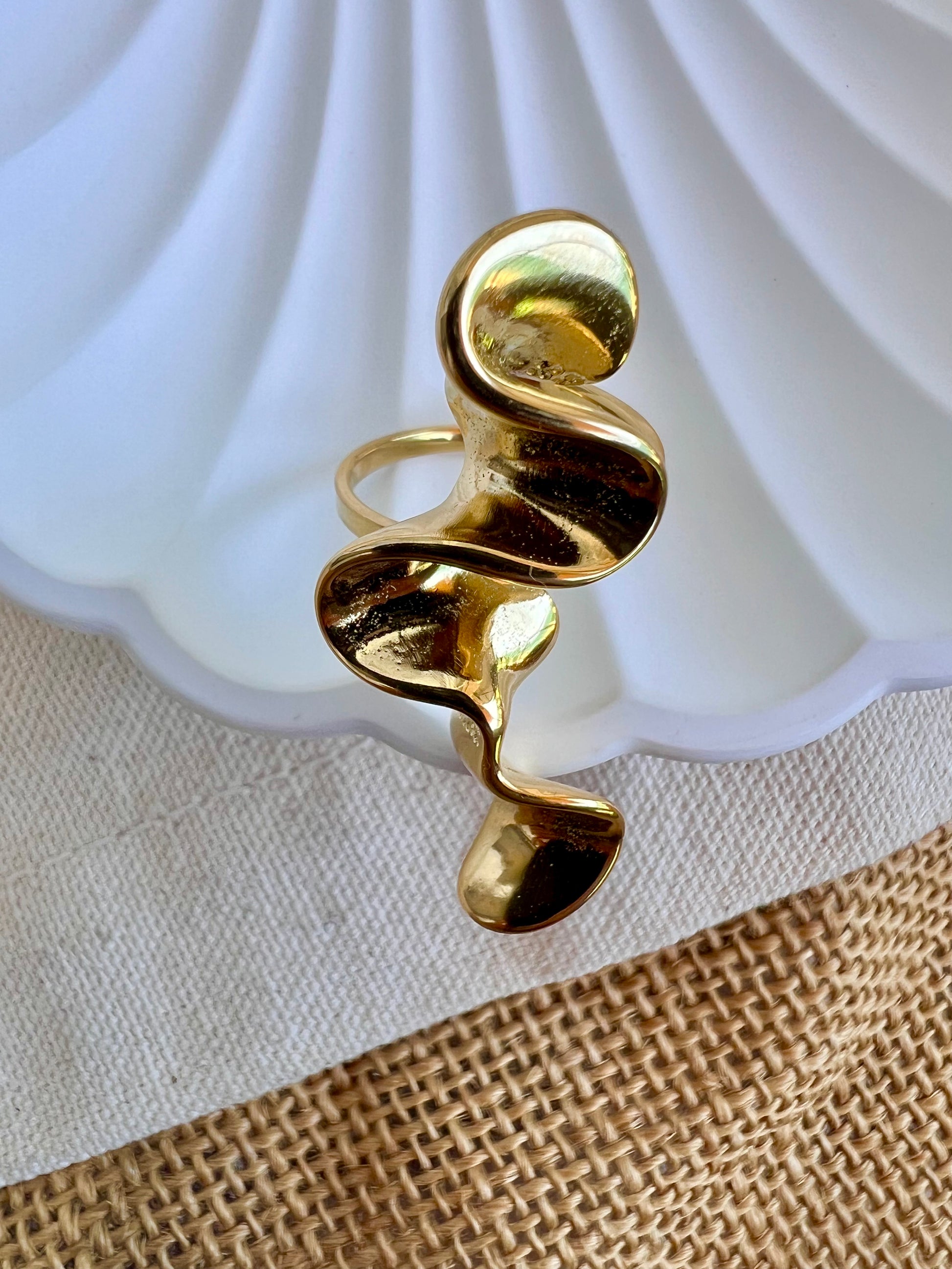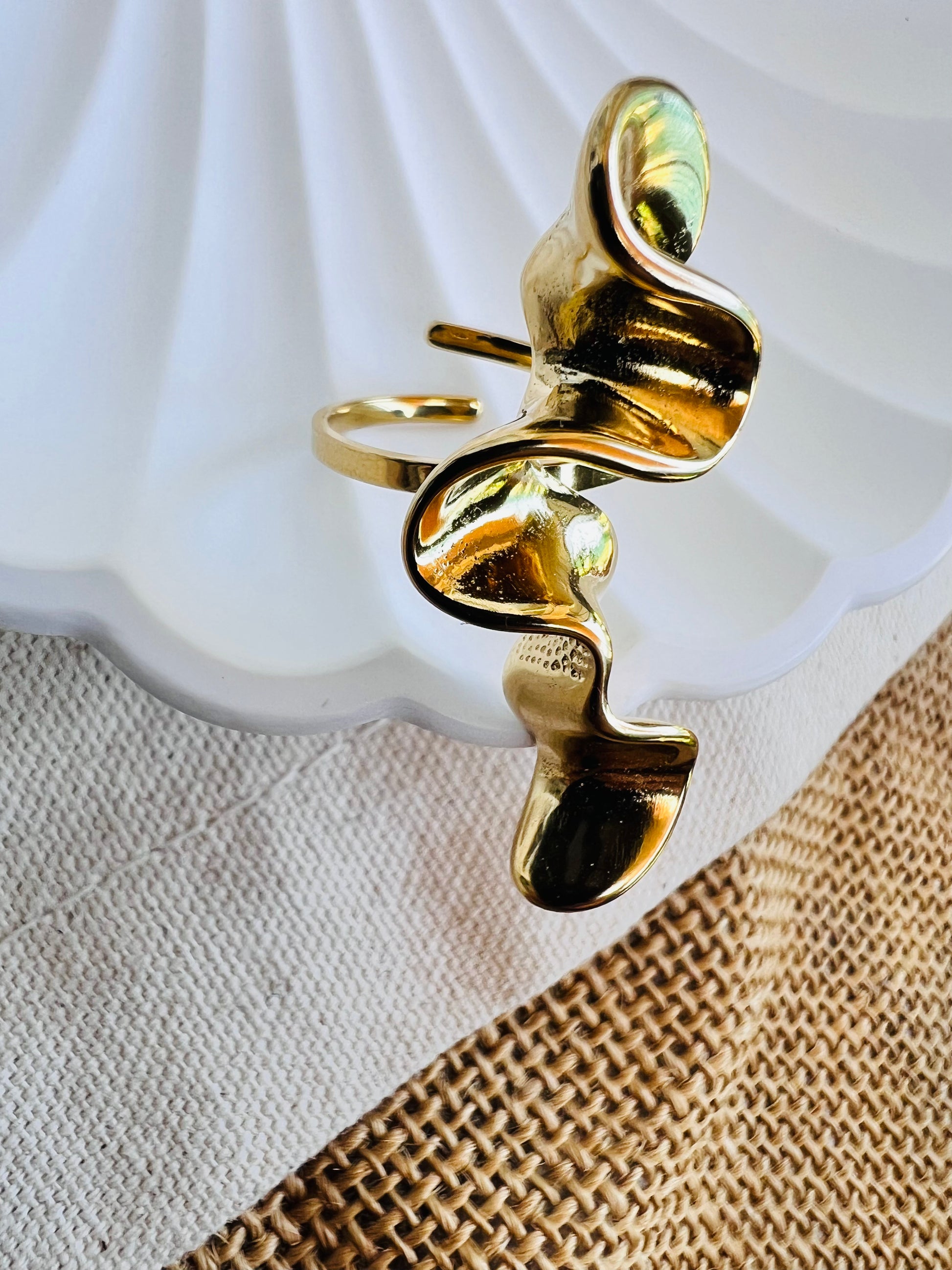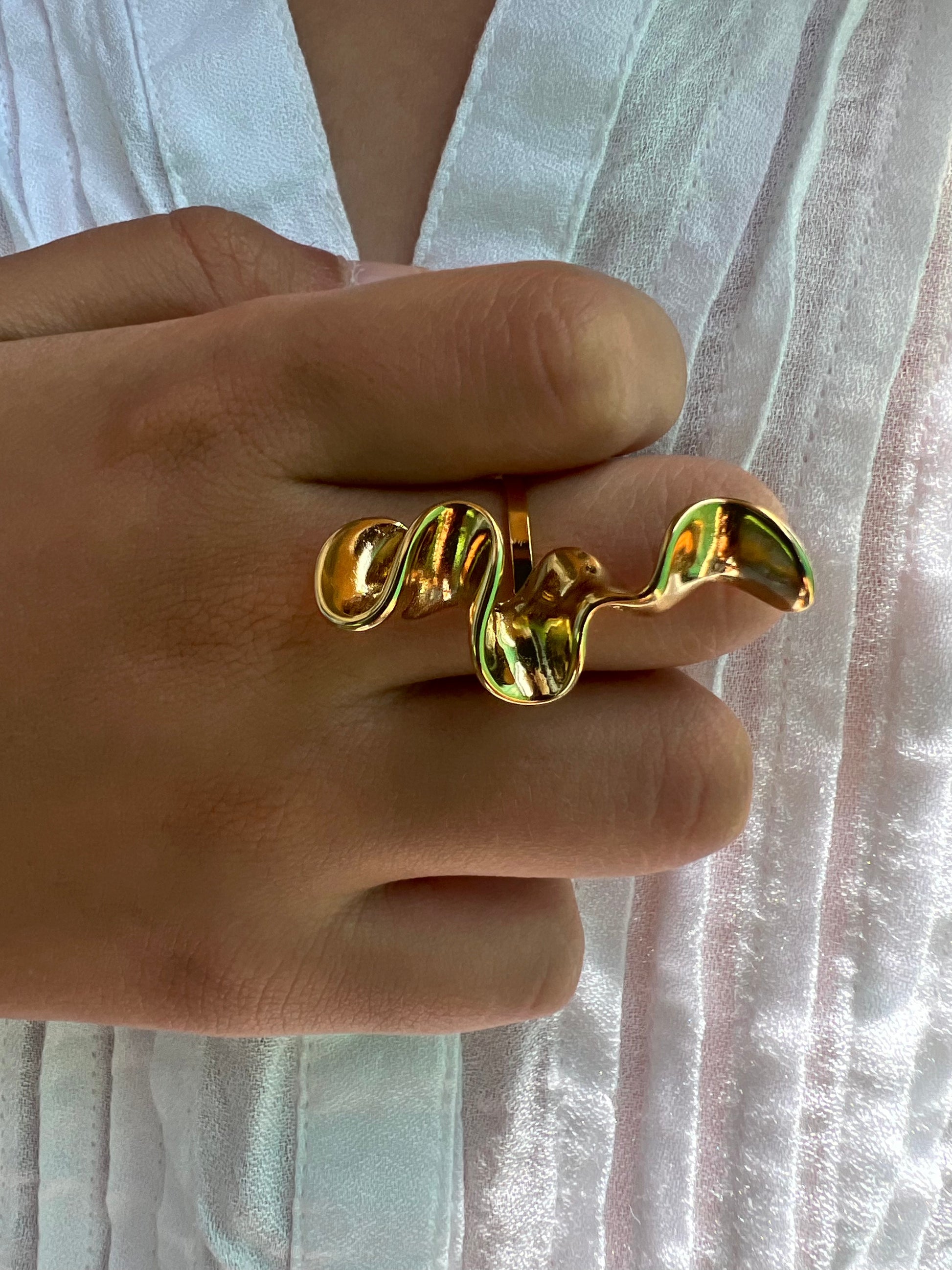 ✨ La bague ROBIN, en acier inoxydable, affiche un style moderne et sculptural. Son design abstrait, aux formes ondulées et fluides, évoque une élégance artistique.