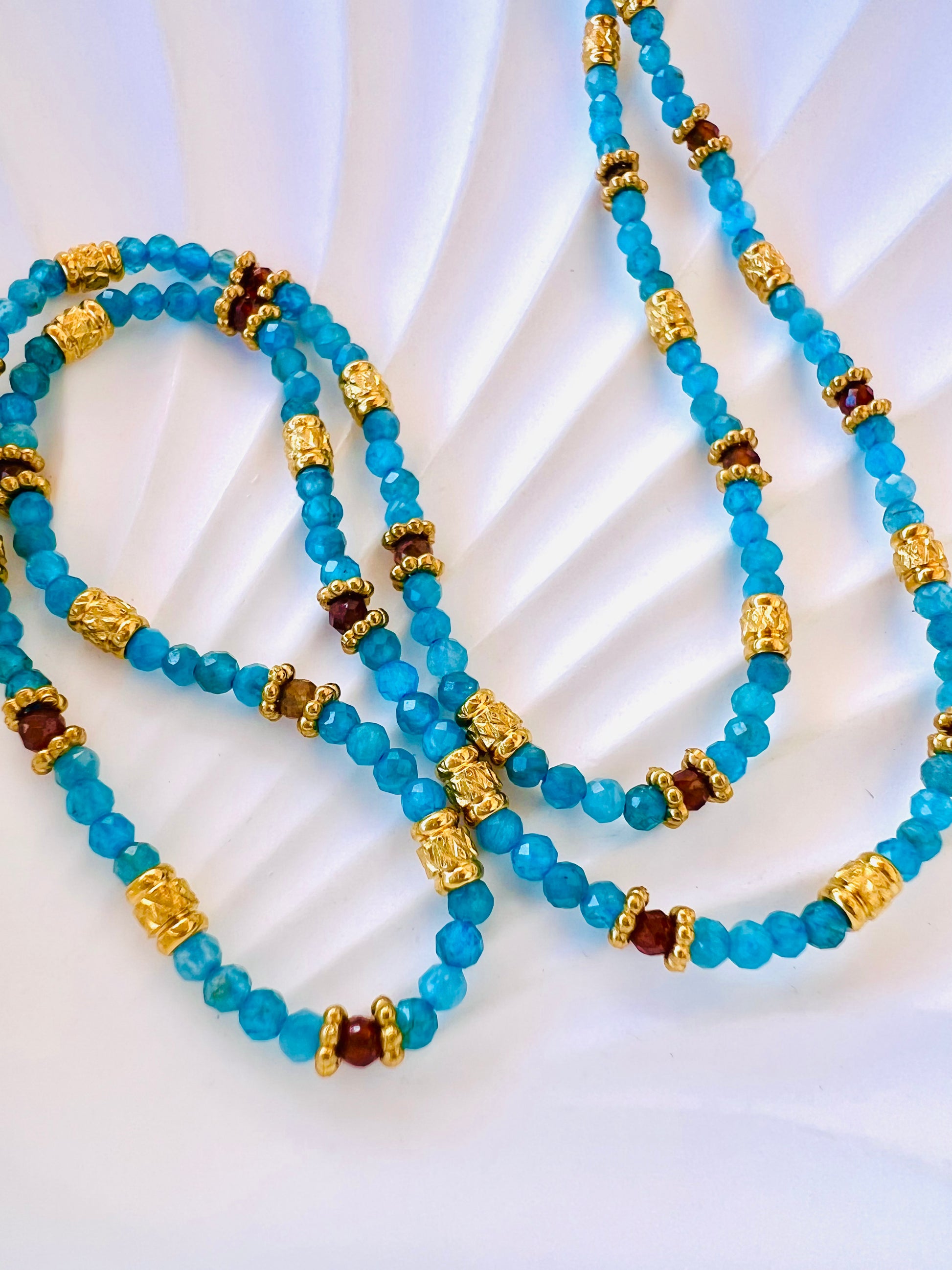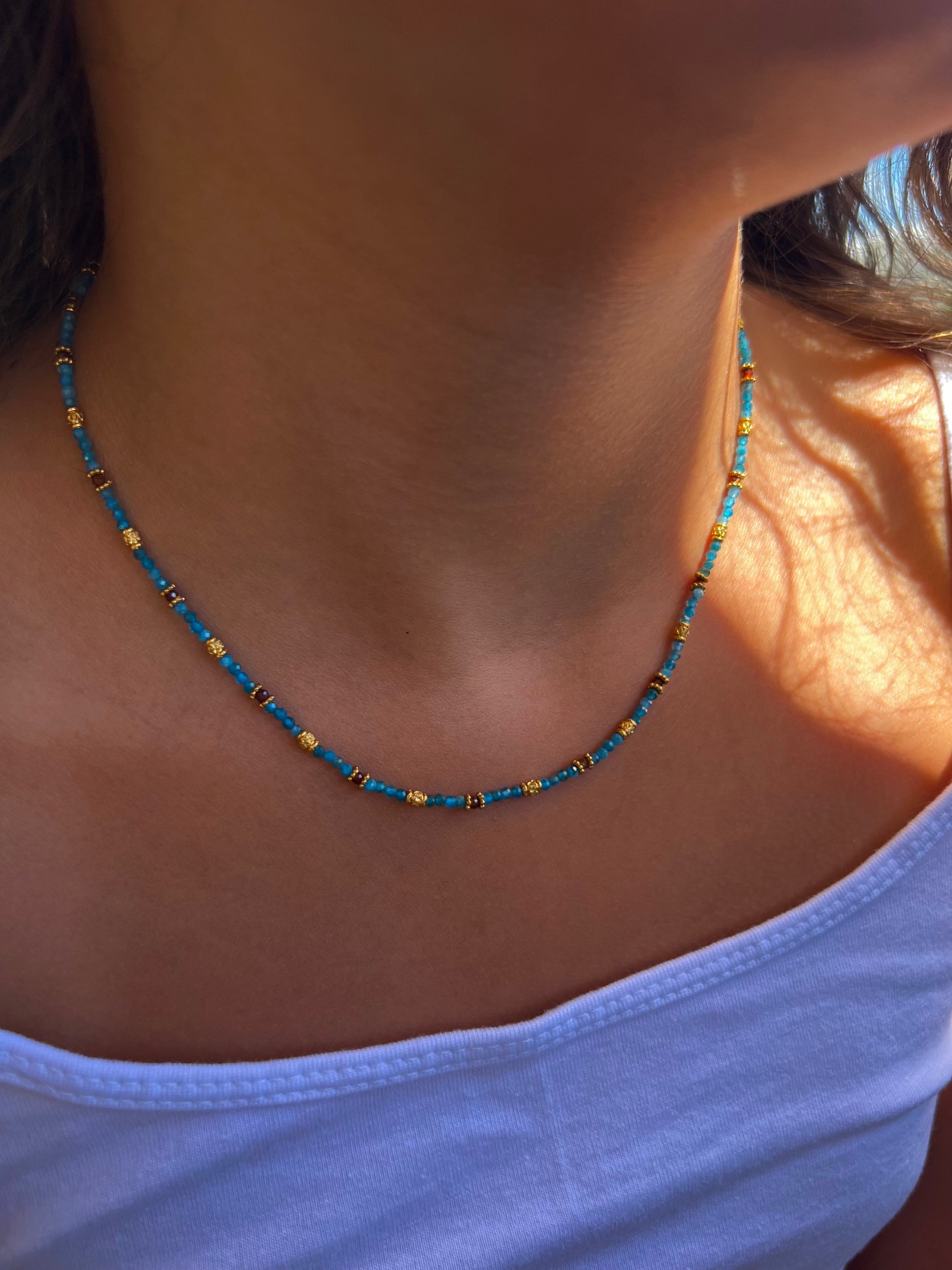 Le collier Rory met à l’honneur l’esprit marin avec sa chaîne perlée et son pendentif en coquille trochidae naturelle 🐚. Un bijou délicat, idéal pour l’été ou pour apporter une touche de fraîcheur toute l’année. Il existe également en version ornée d’apatite 💙, pour une allure encore plus vibrante.