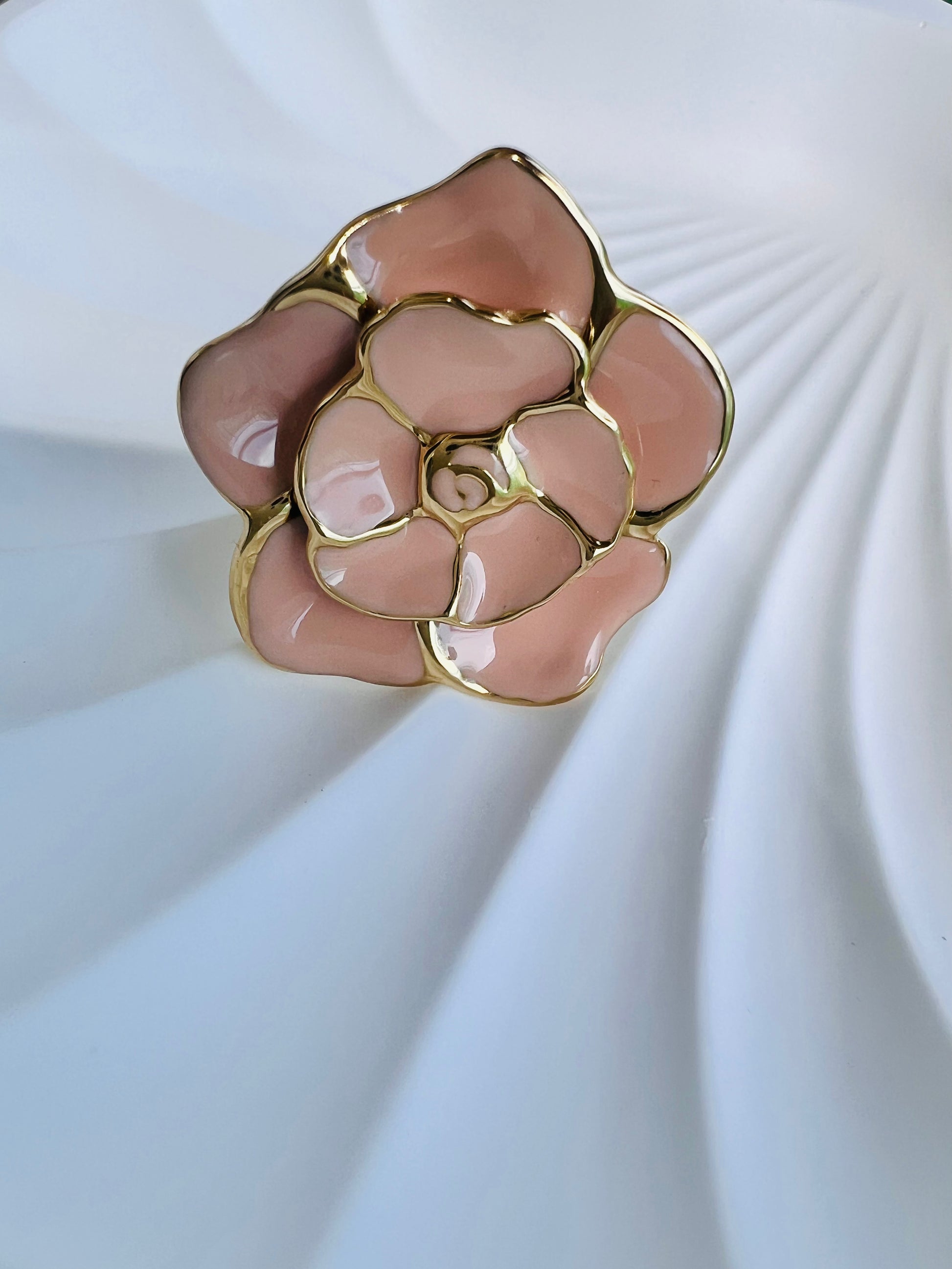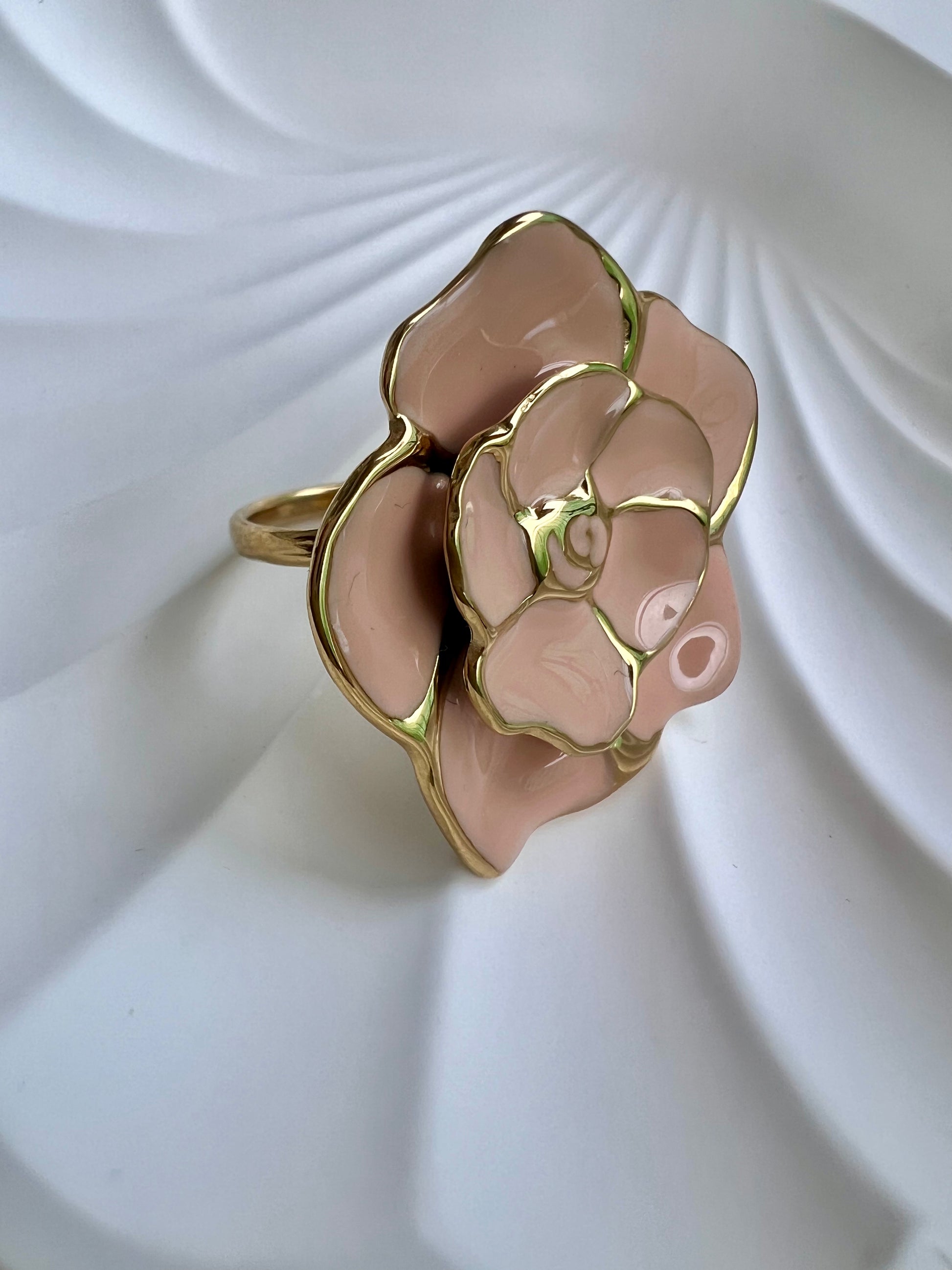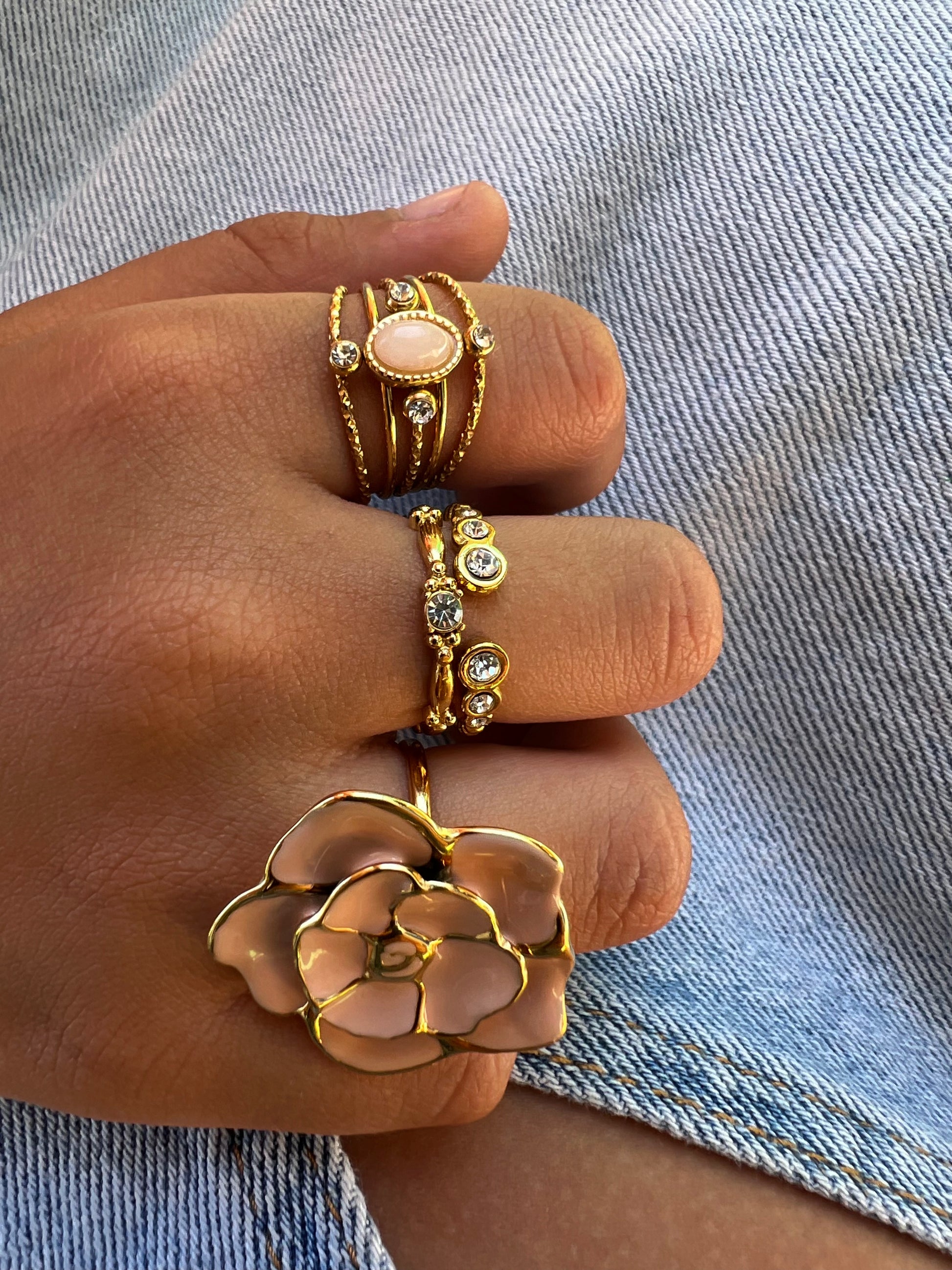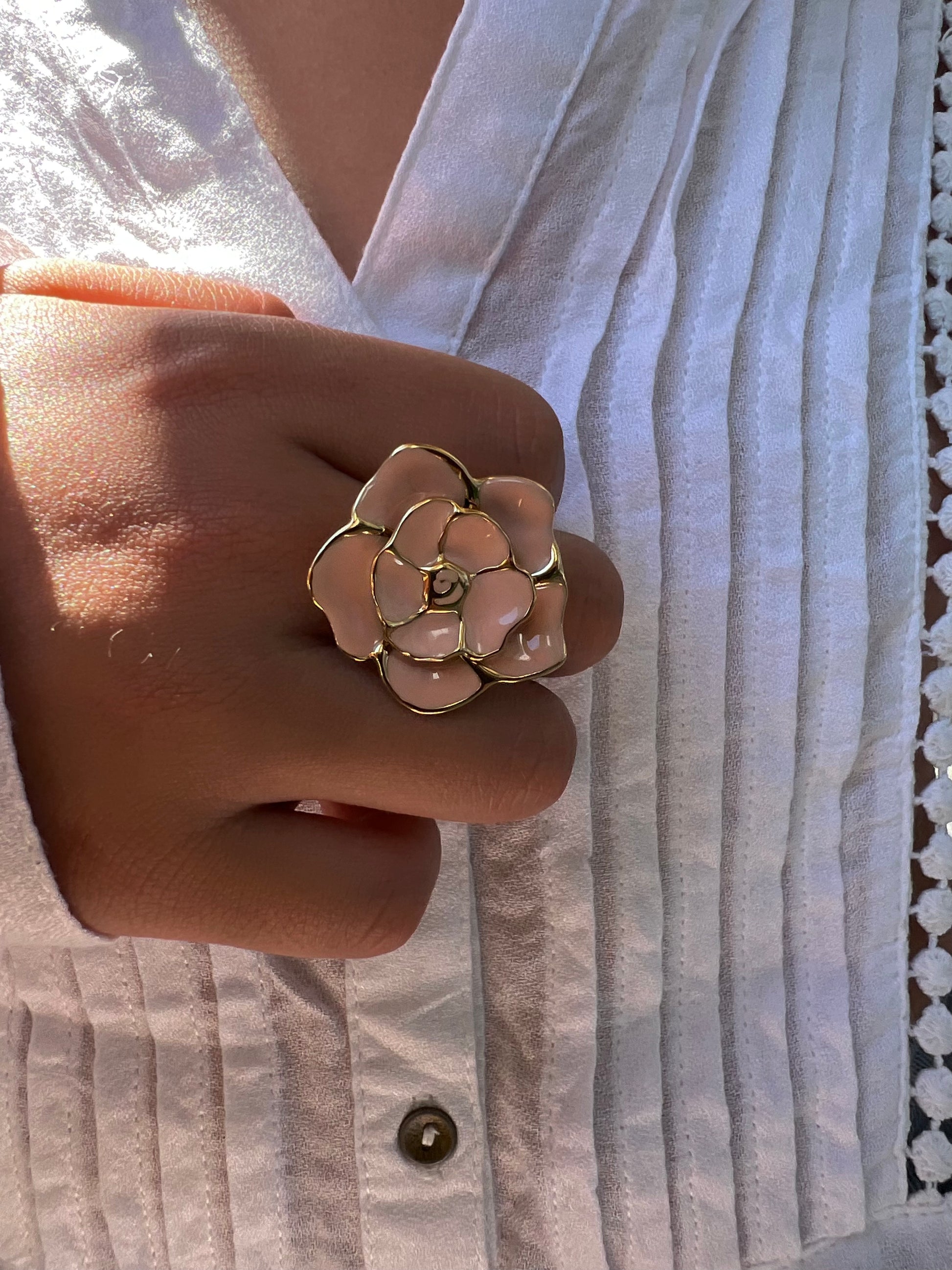 Bague ROSIE en acier inoxydable, délicatement façonnée en forme de fleur aux pétales incurvées, joliment émaillées pour un effet doux et coloré 🌸.
