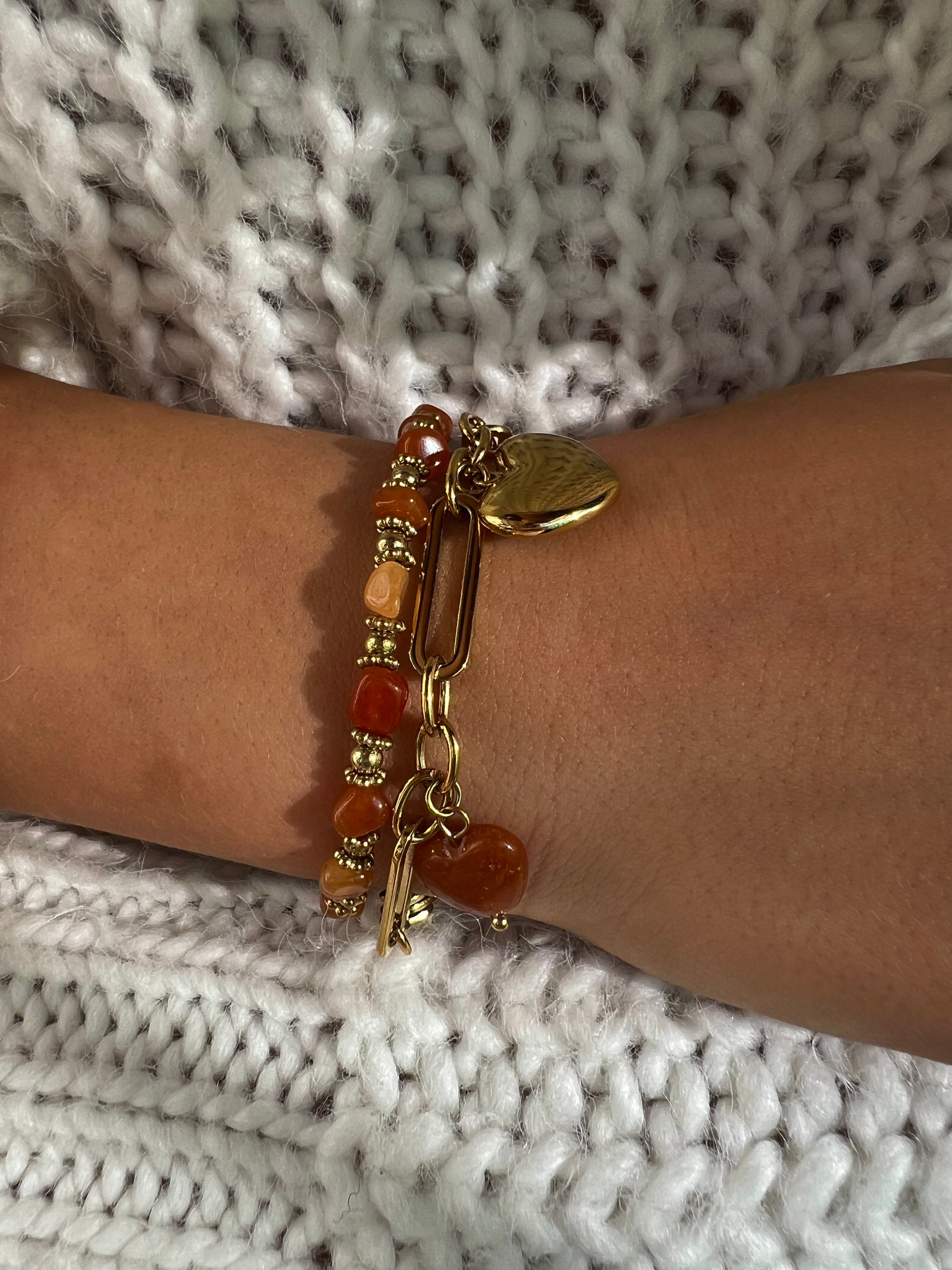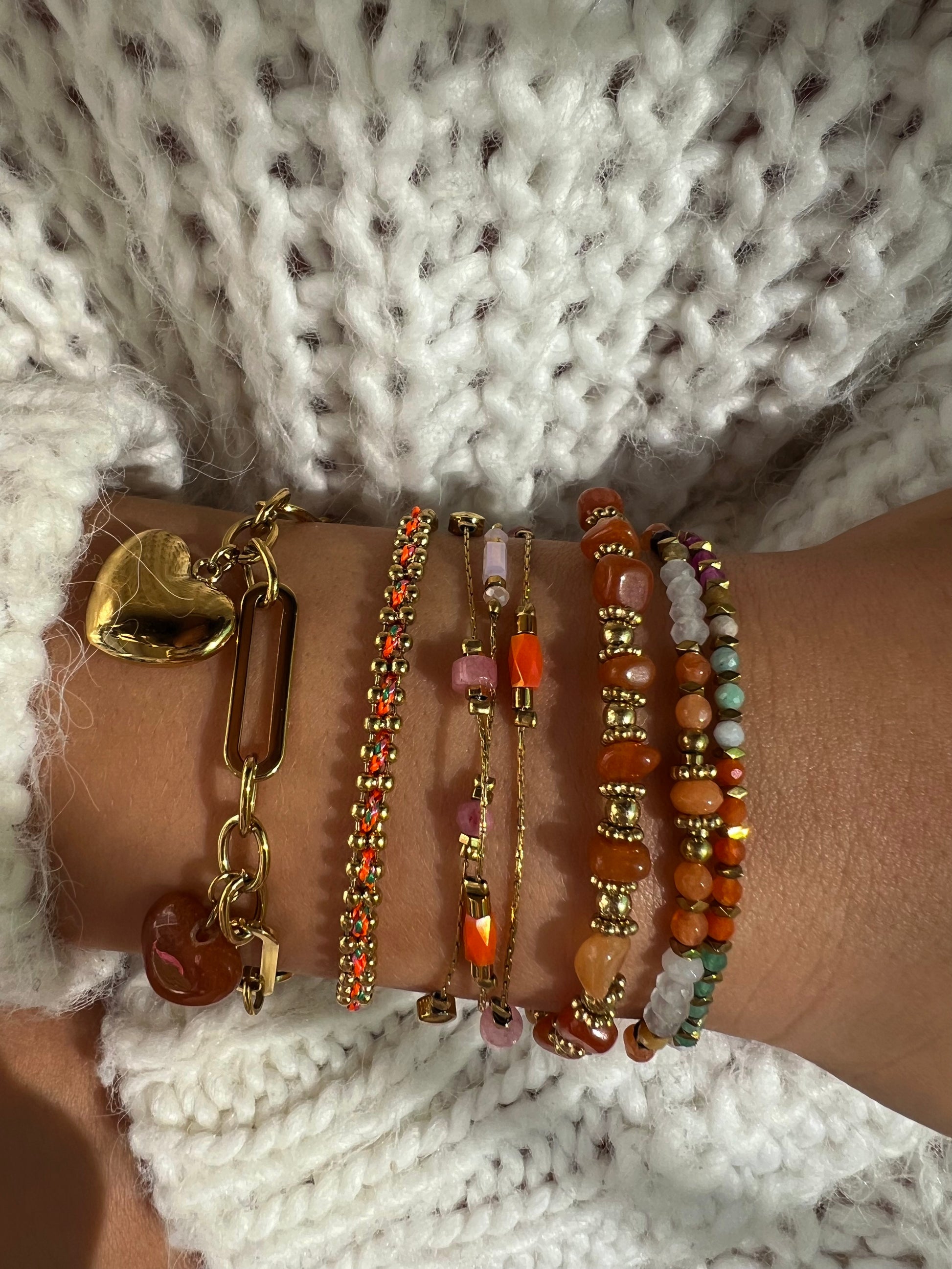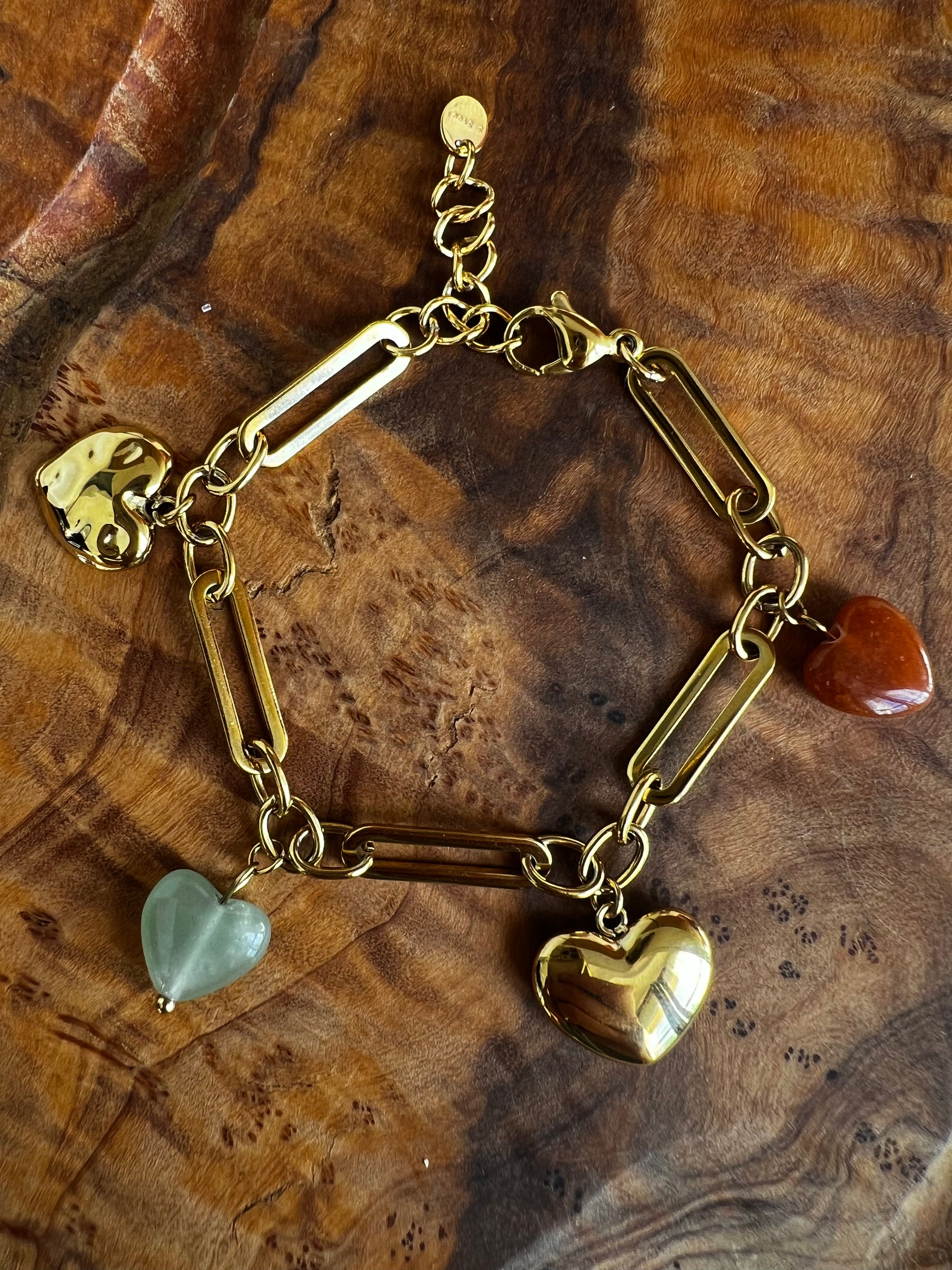 ✧ Bracelet doré en acier inoxydable et agate rose ou verte et orange.