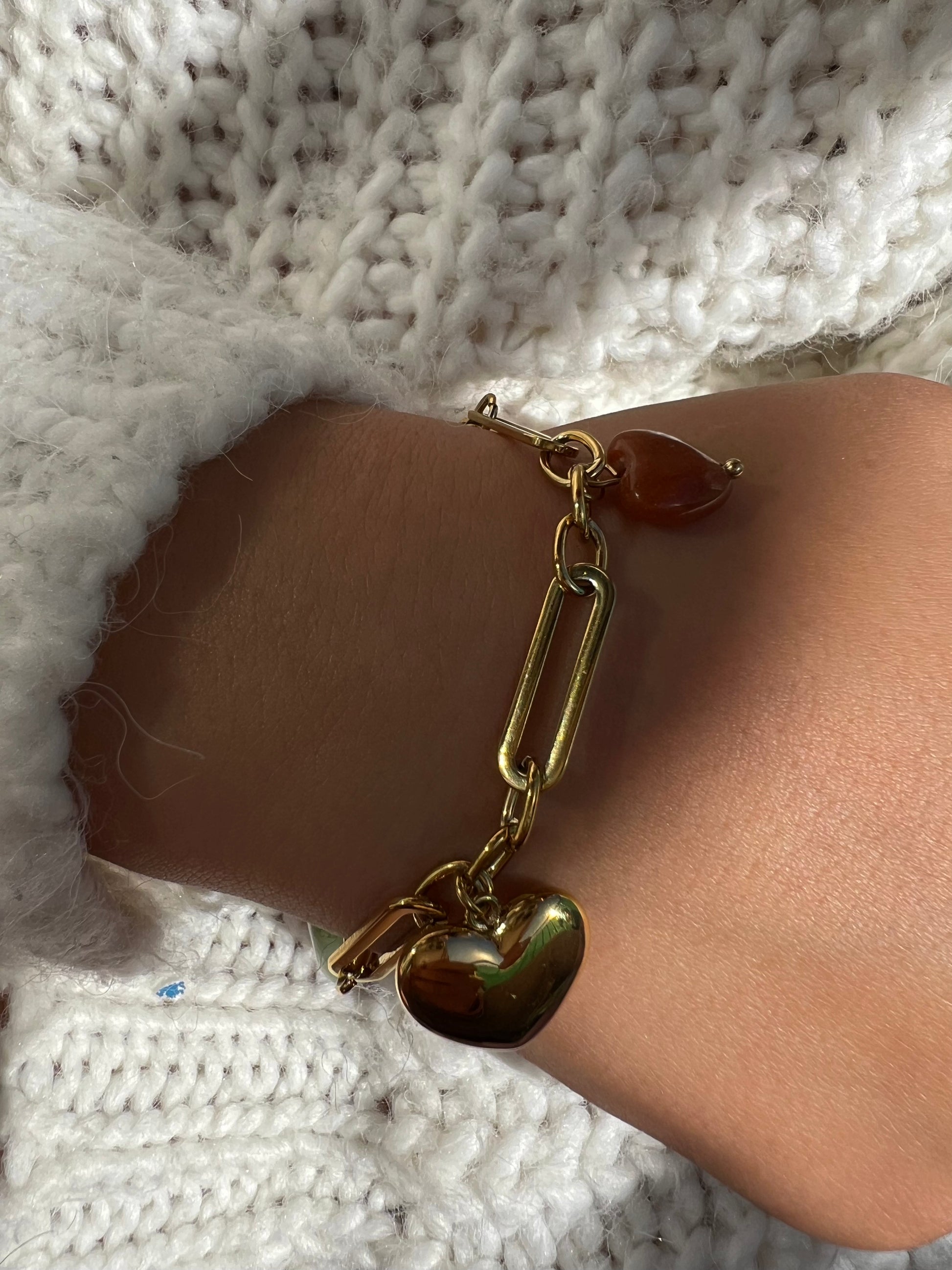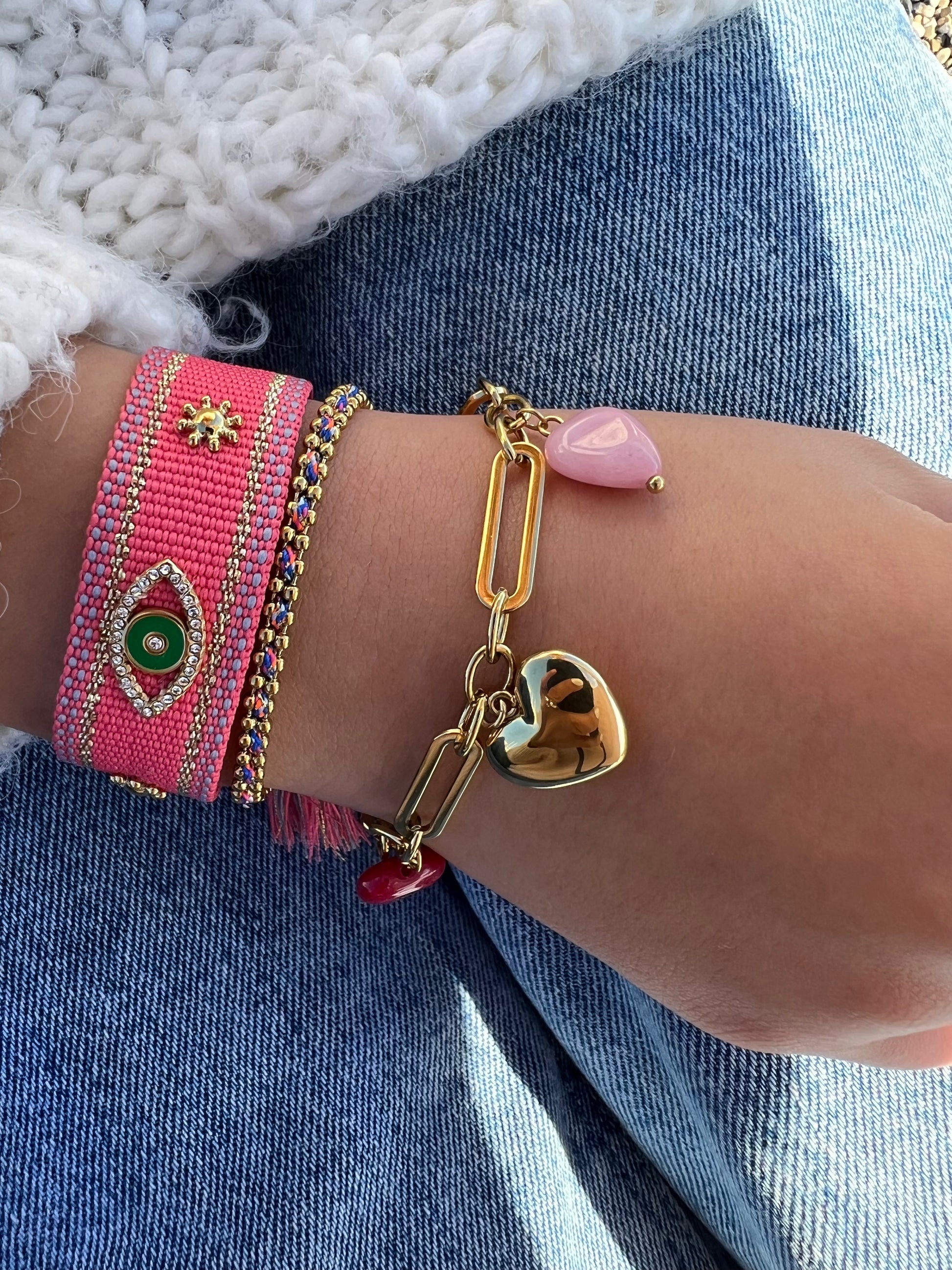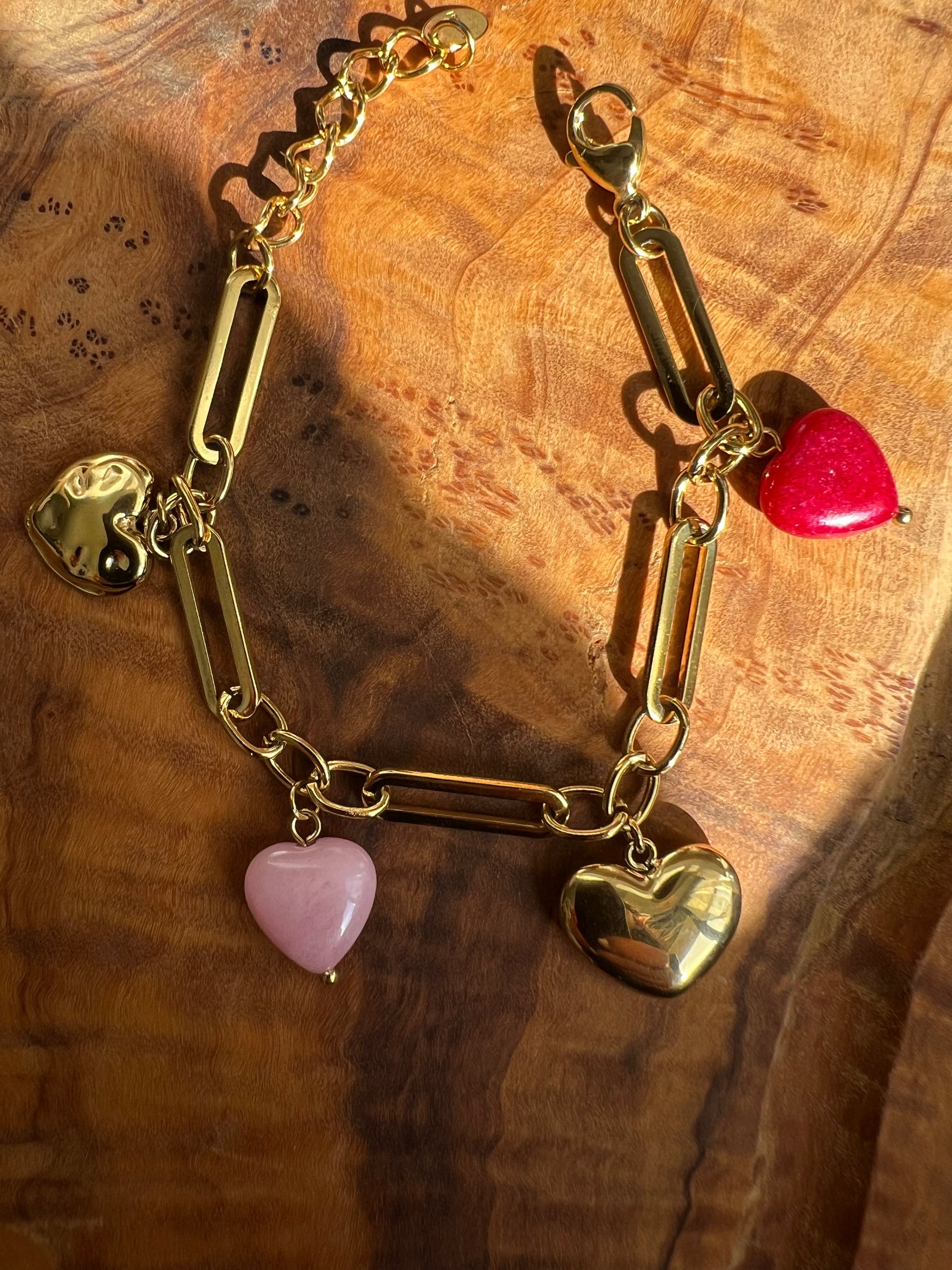 ✧ Bracelet doré en acier inoxydable et agate rose ou verte et orange.