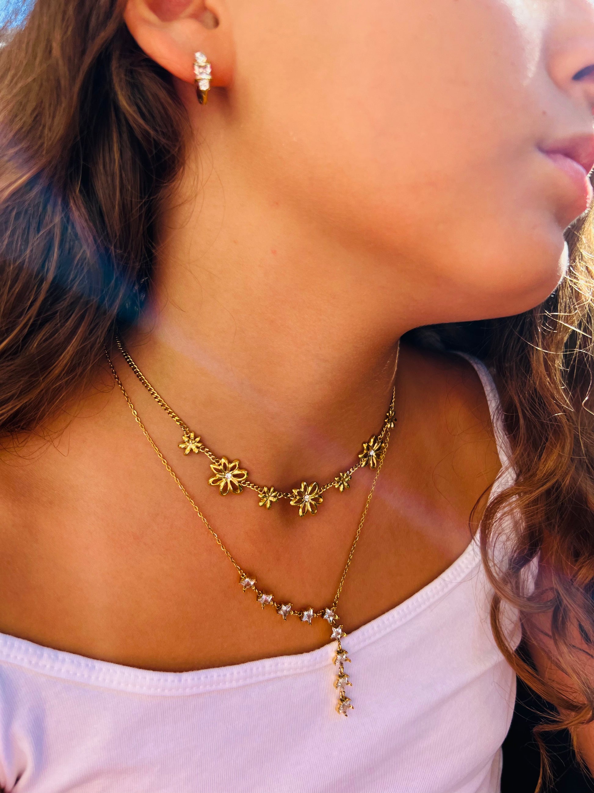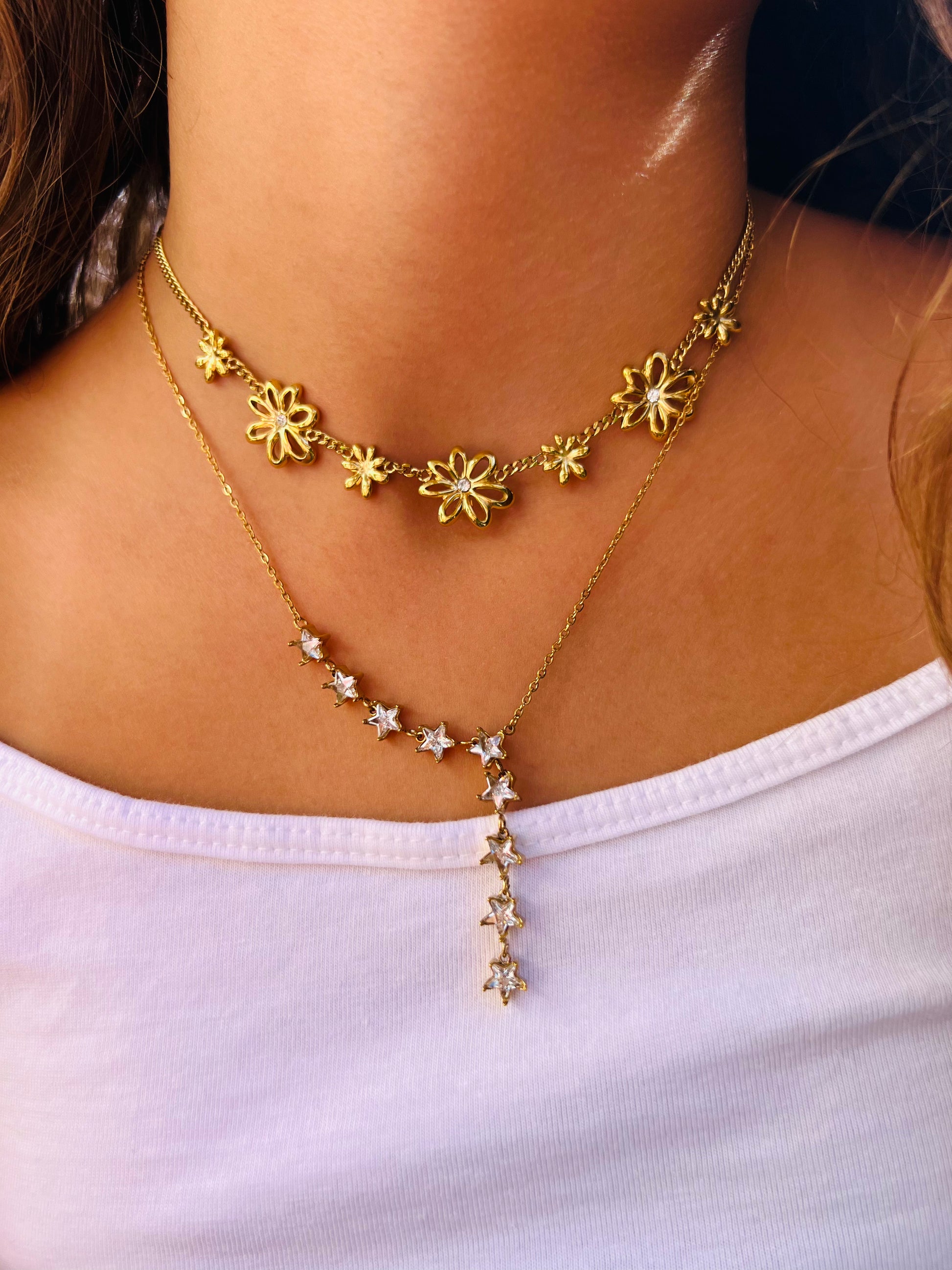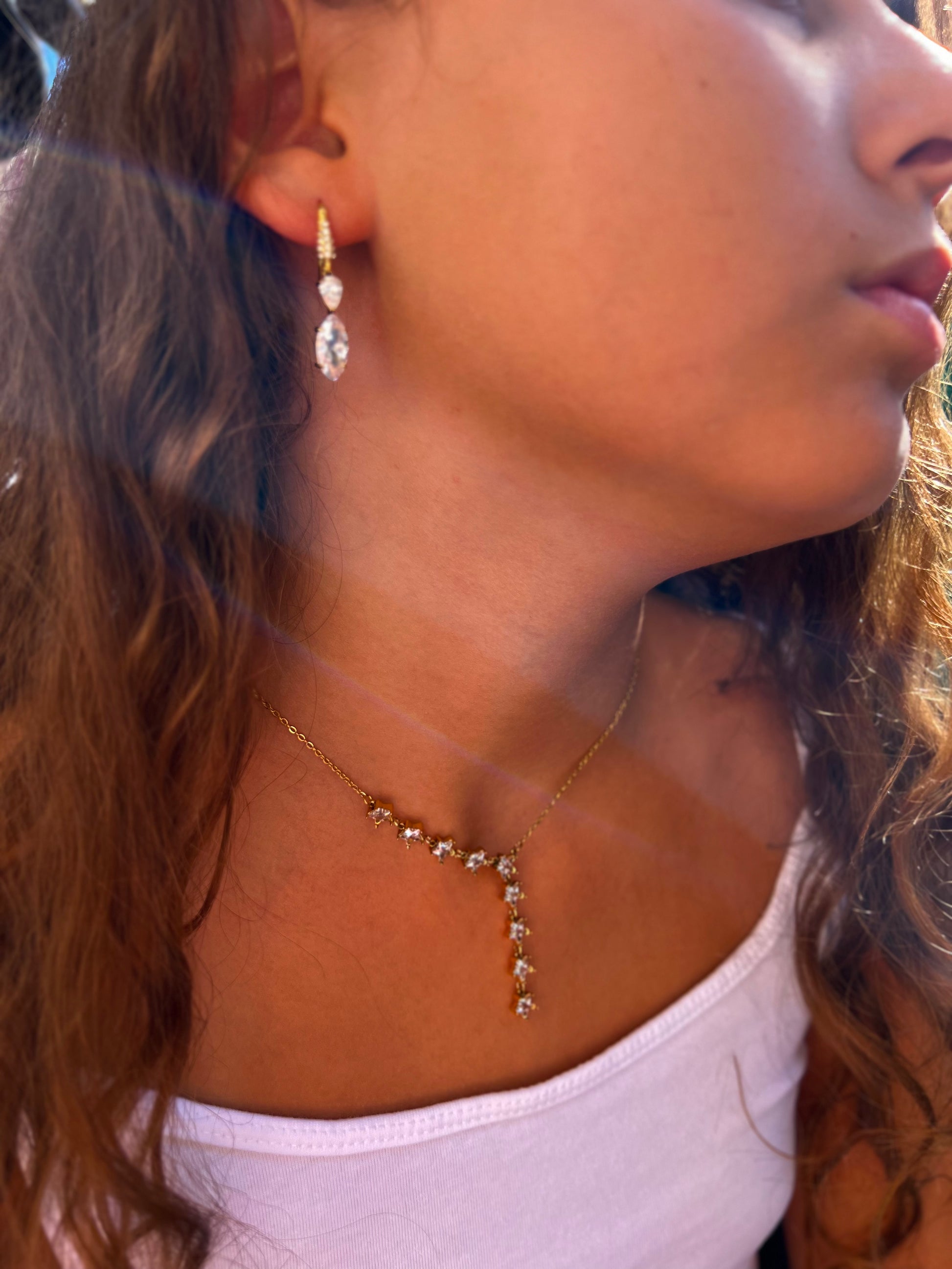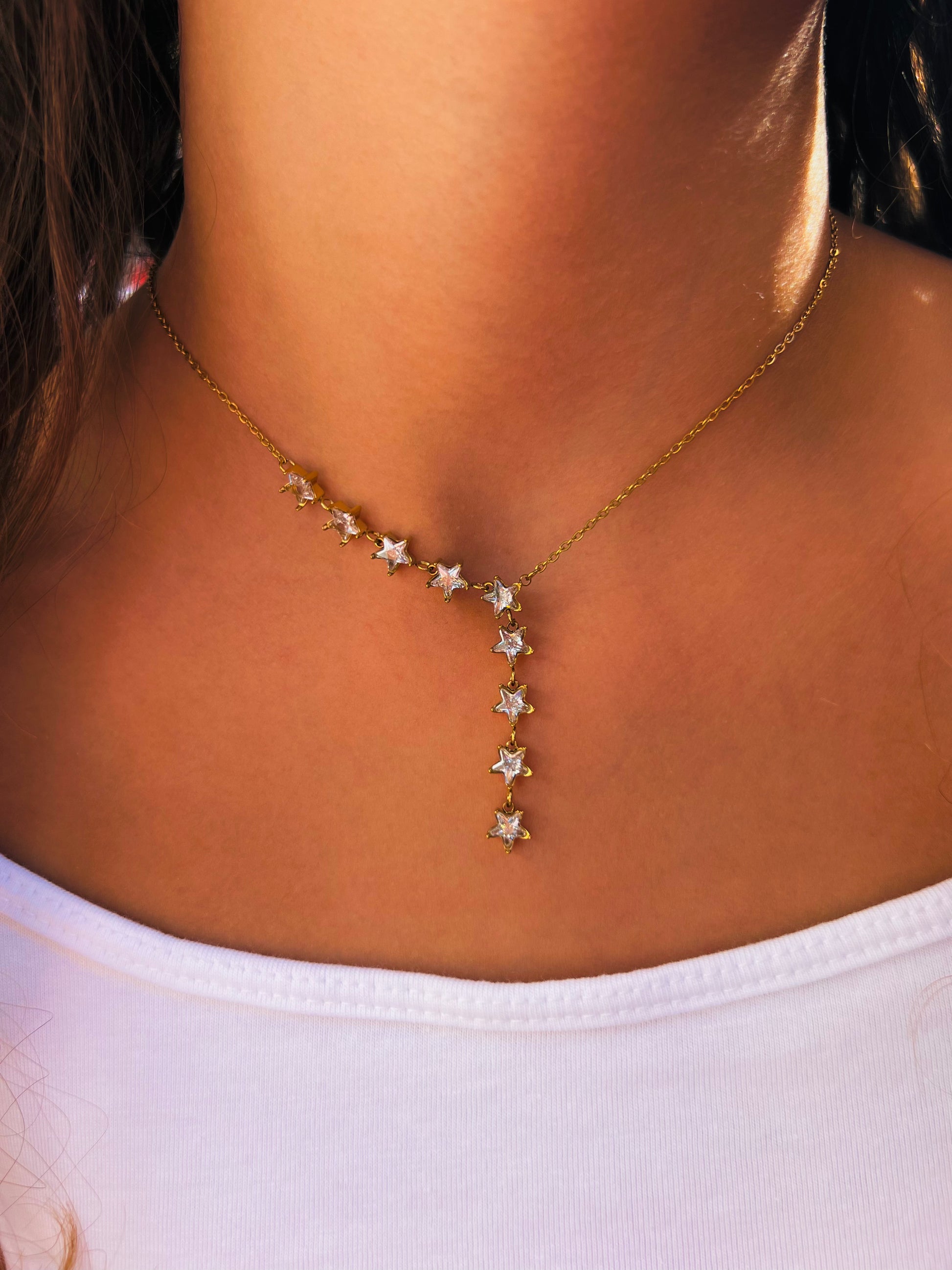 Le collier Shanna brille par son design délicat en Y, orné d’étoiles serties d’oxydes de zirconium scintillants. Véritable constellation à porter, il illumine vos tenues avec élégance et subtilité. Un bijou moderne et raffiné, pensé pour capter la lumière à chaque mouvement 🌌.