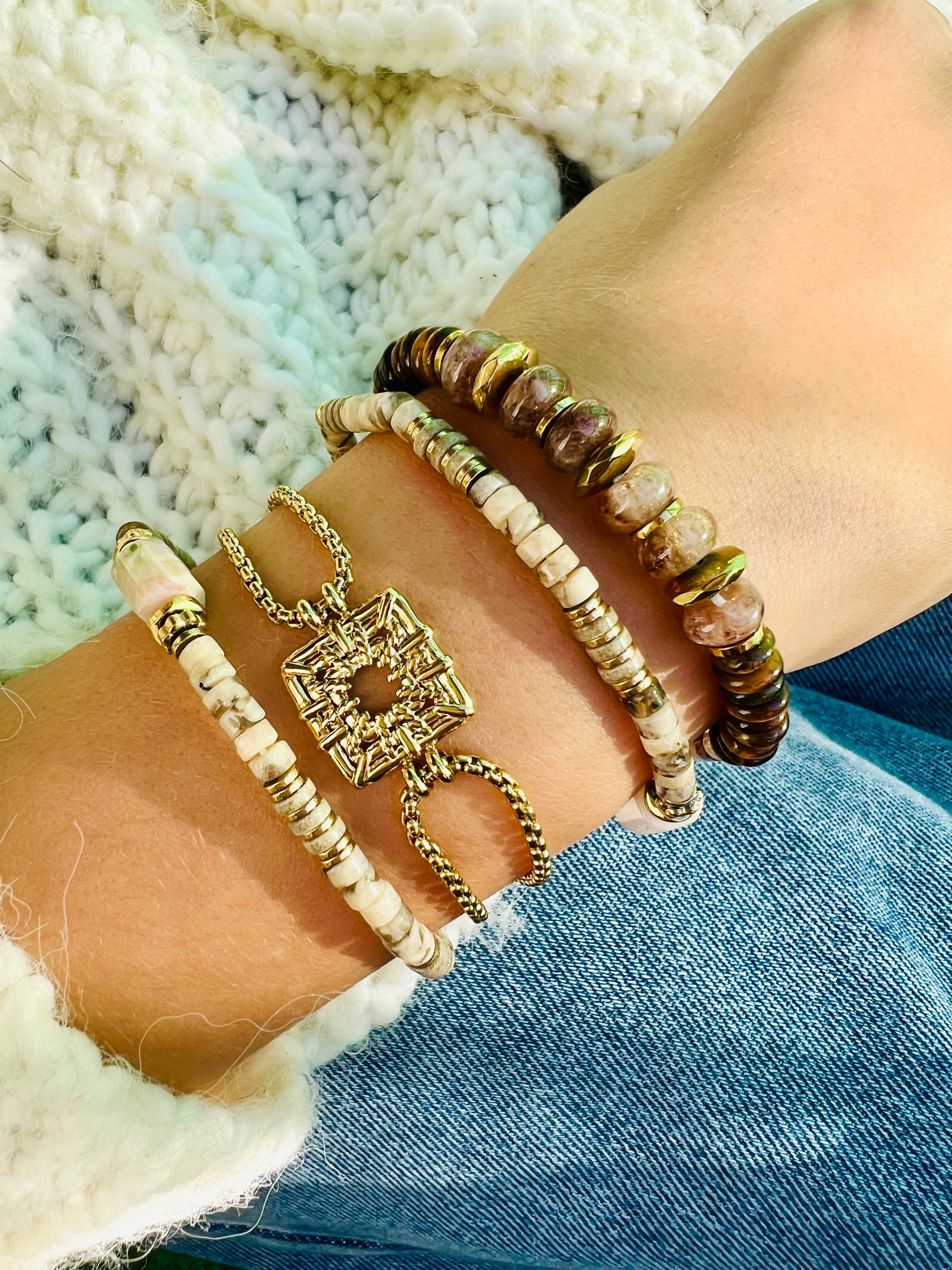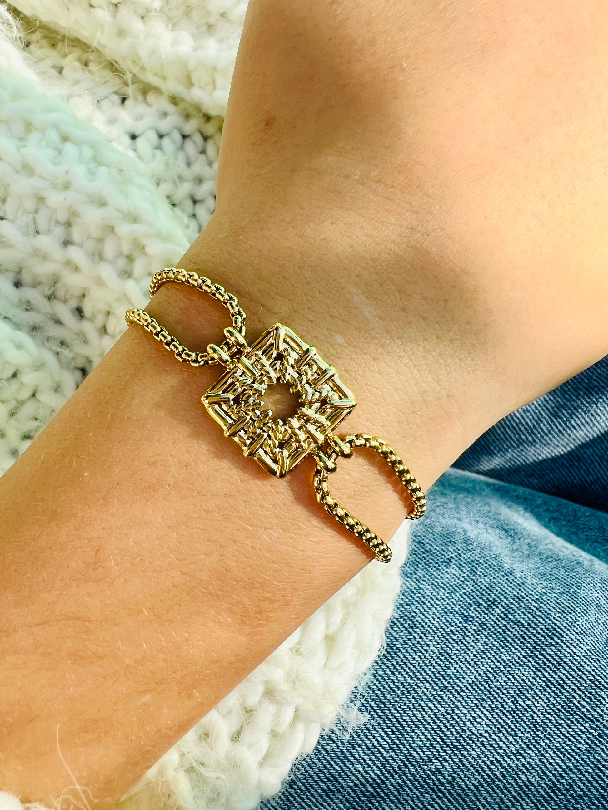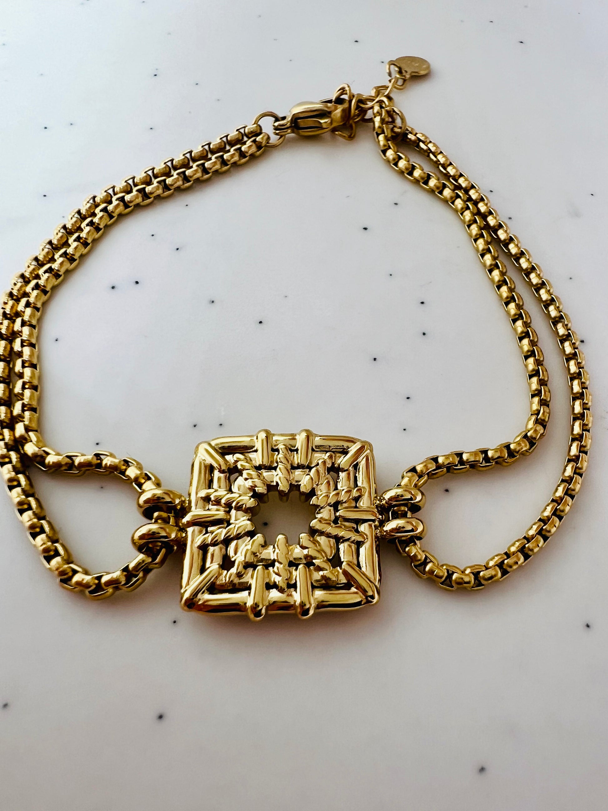 Le bracelet SOPRA à deux rangs est orné d'une pampille carrée ajourée, offrant un design chic et raffiné. Idéal pour ajouter une touche d'élégance à n'importe quelle tenue !