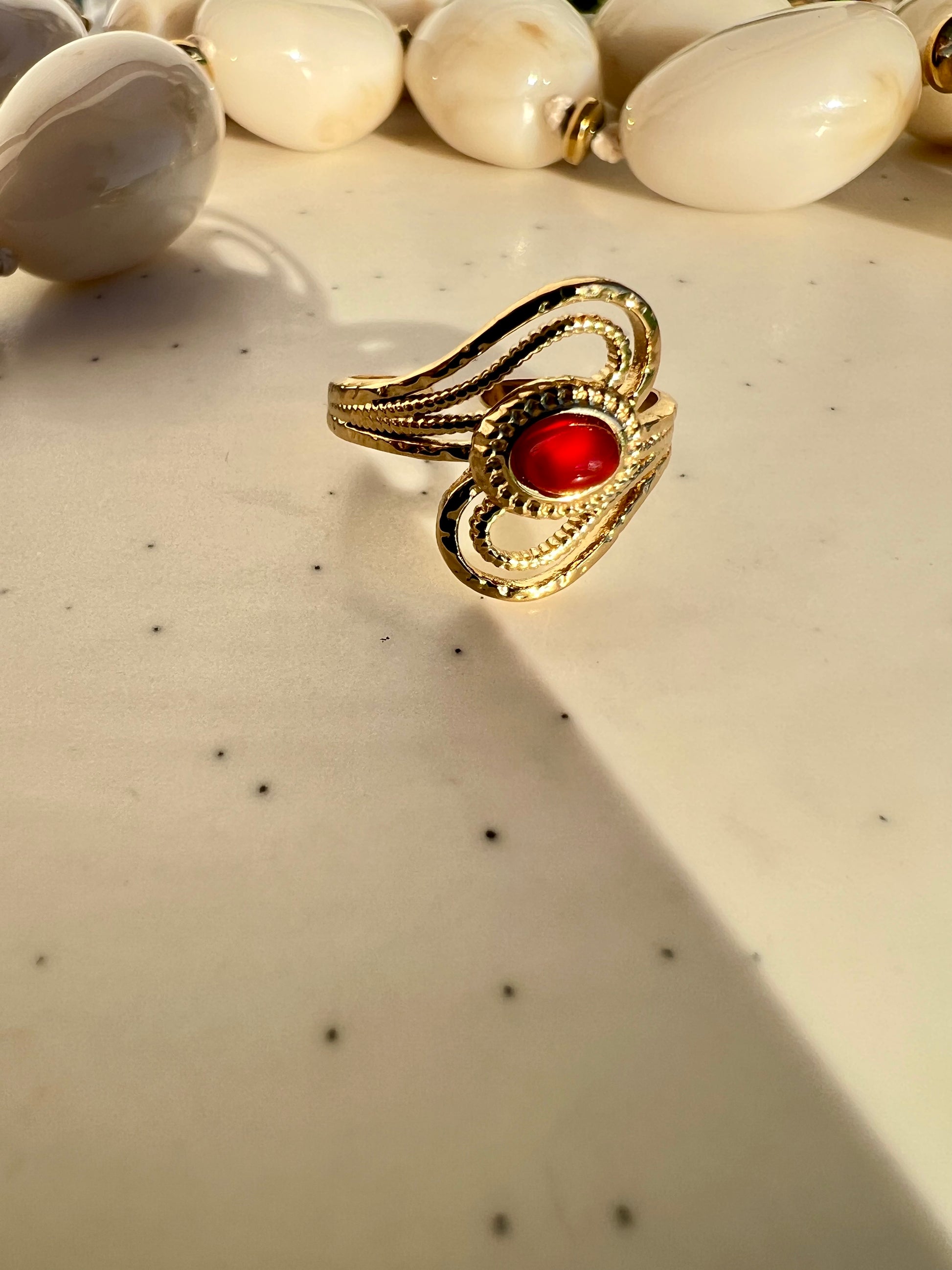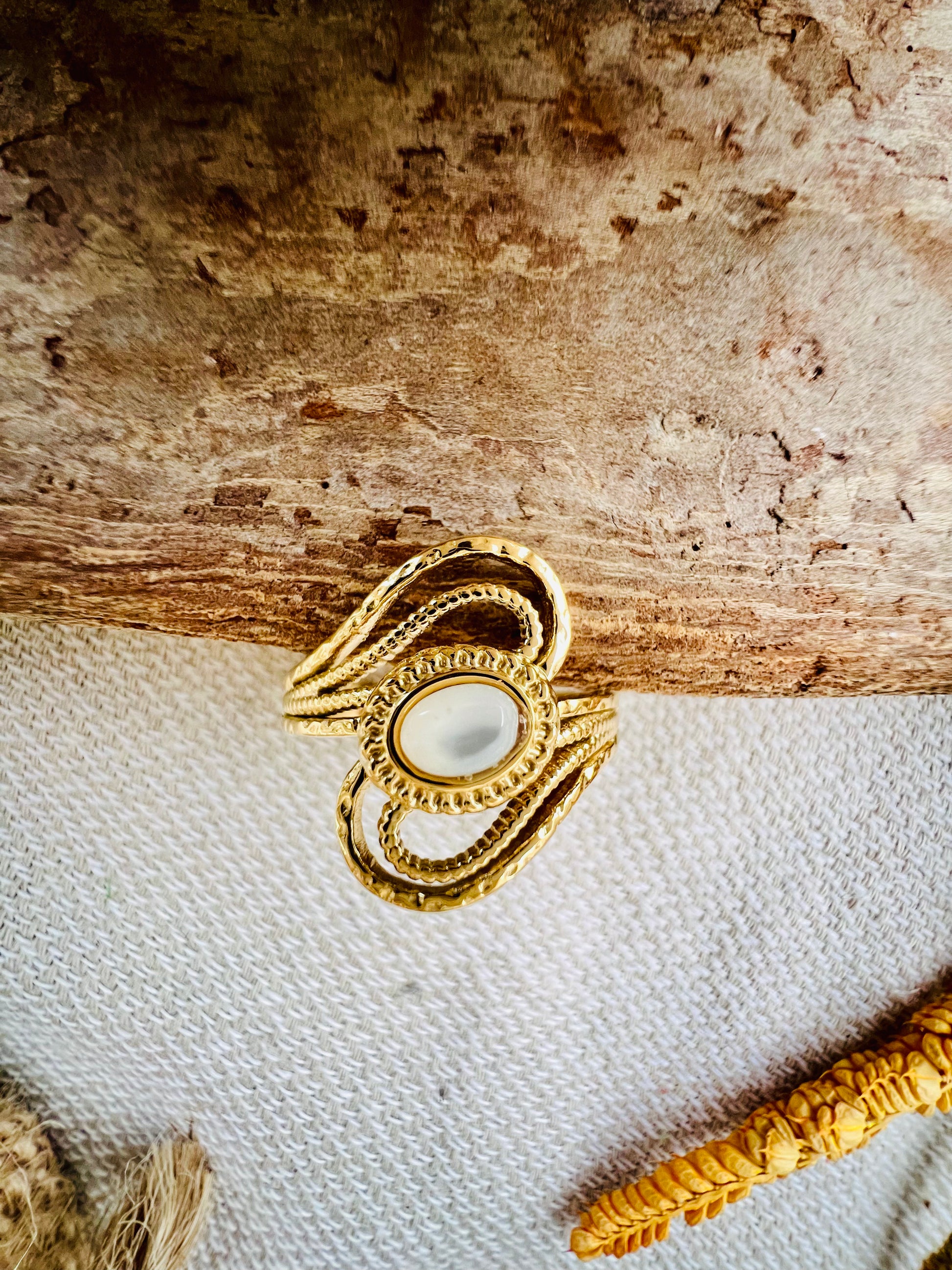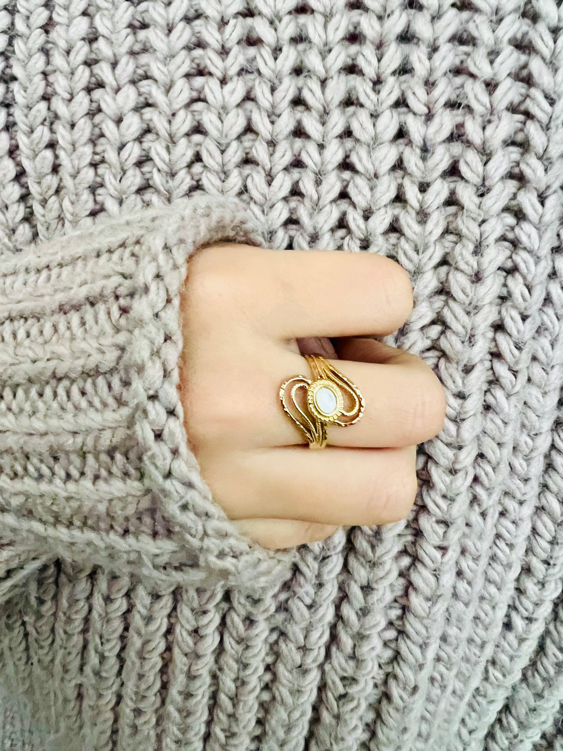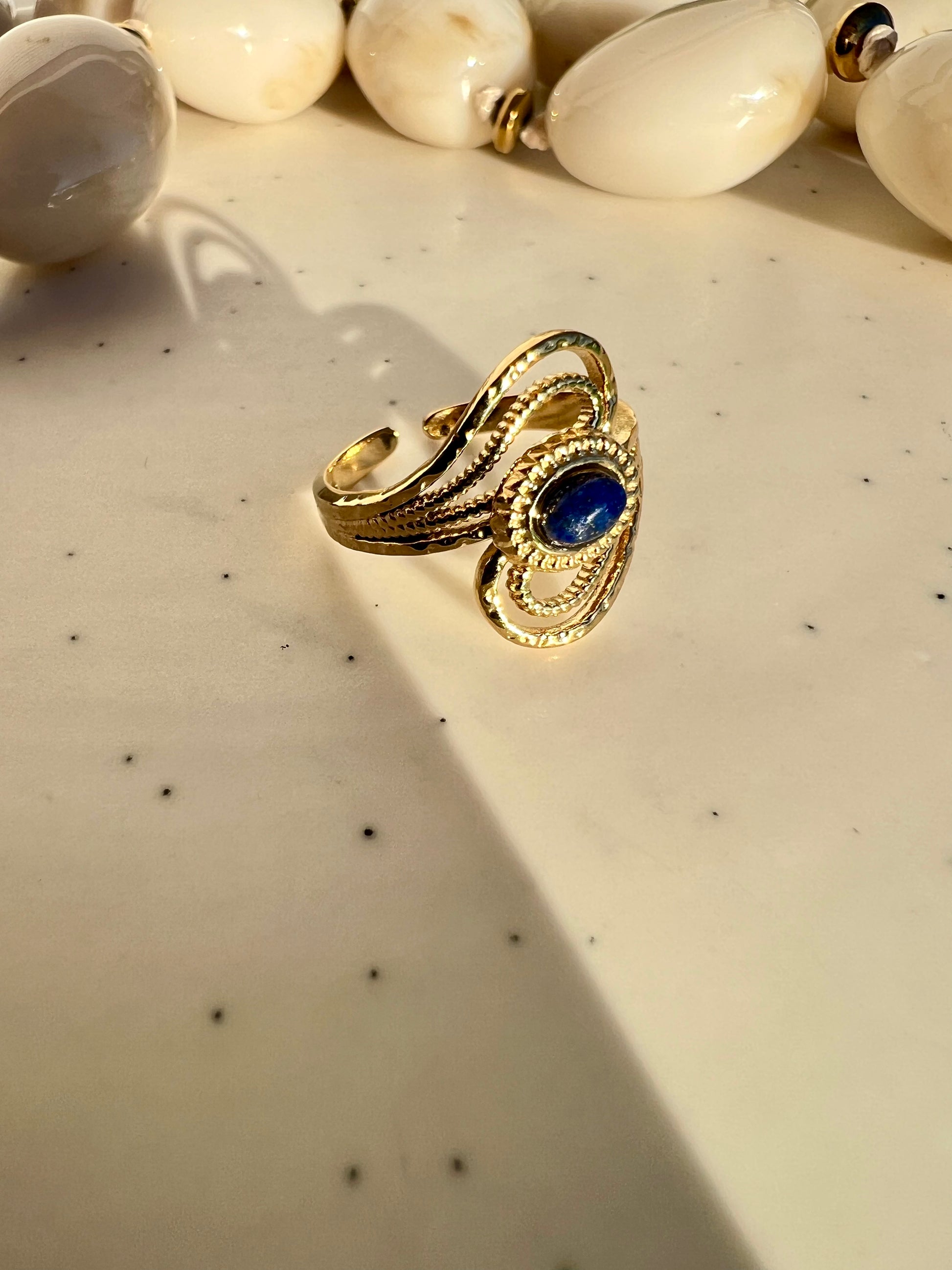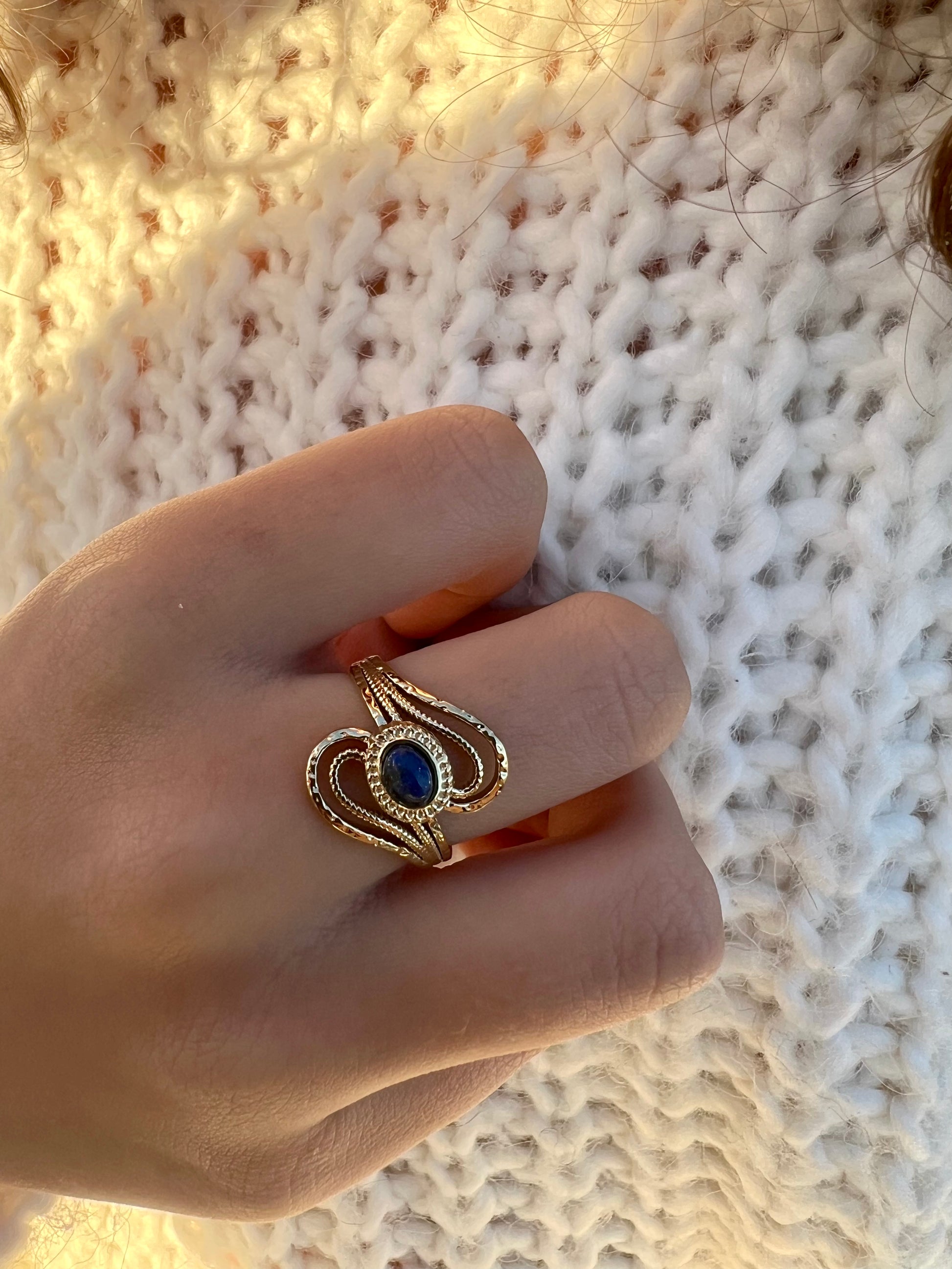La bague délicate et ajourée SULTANE, ornée d'une pierre naturelle est un bijou élégant et unique !