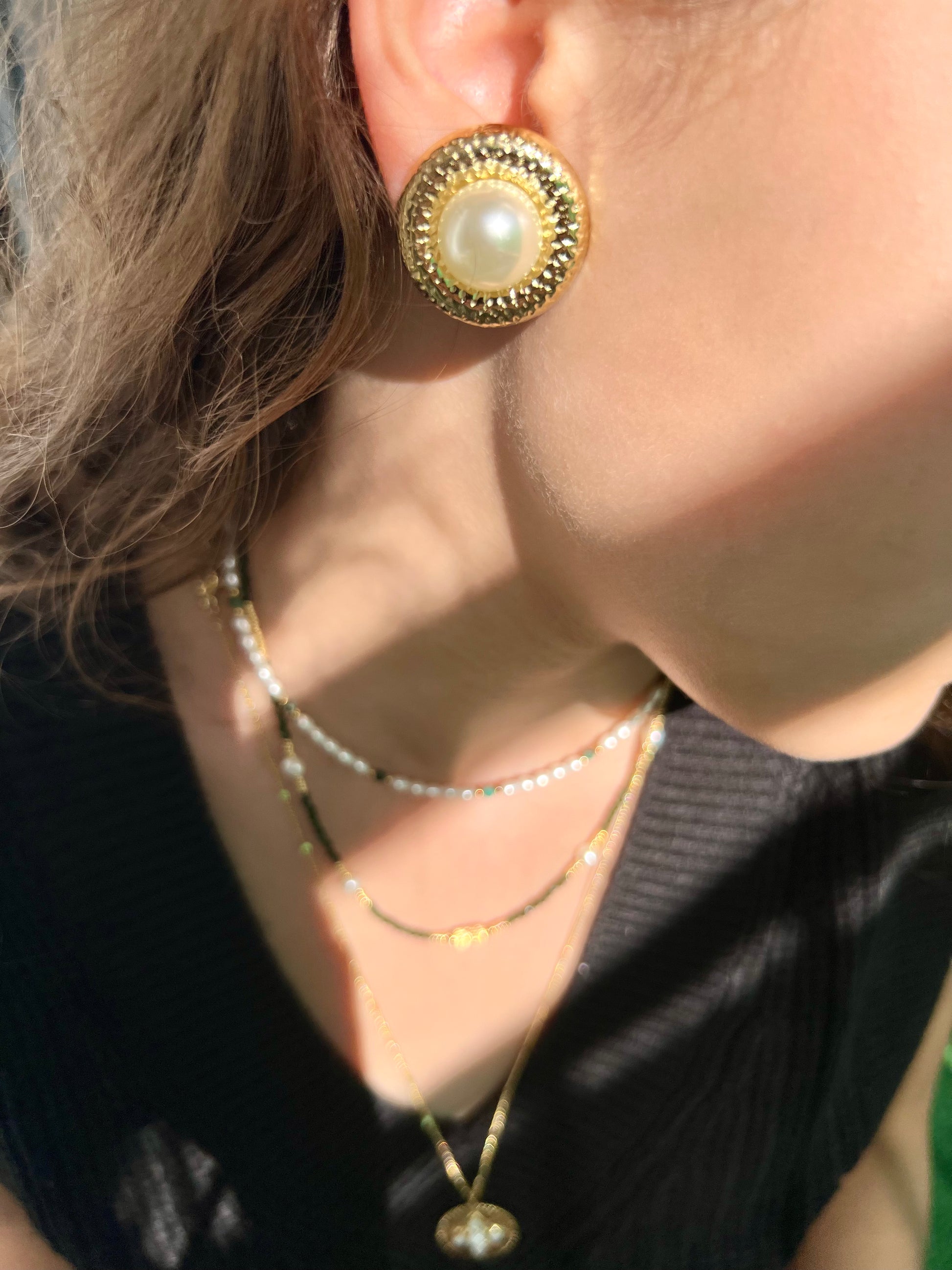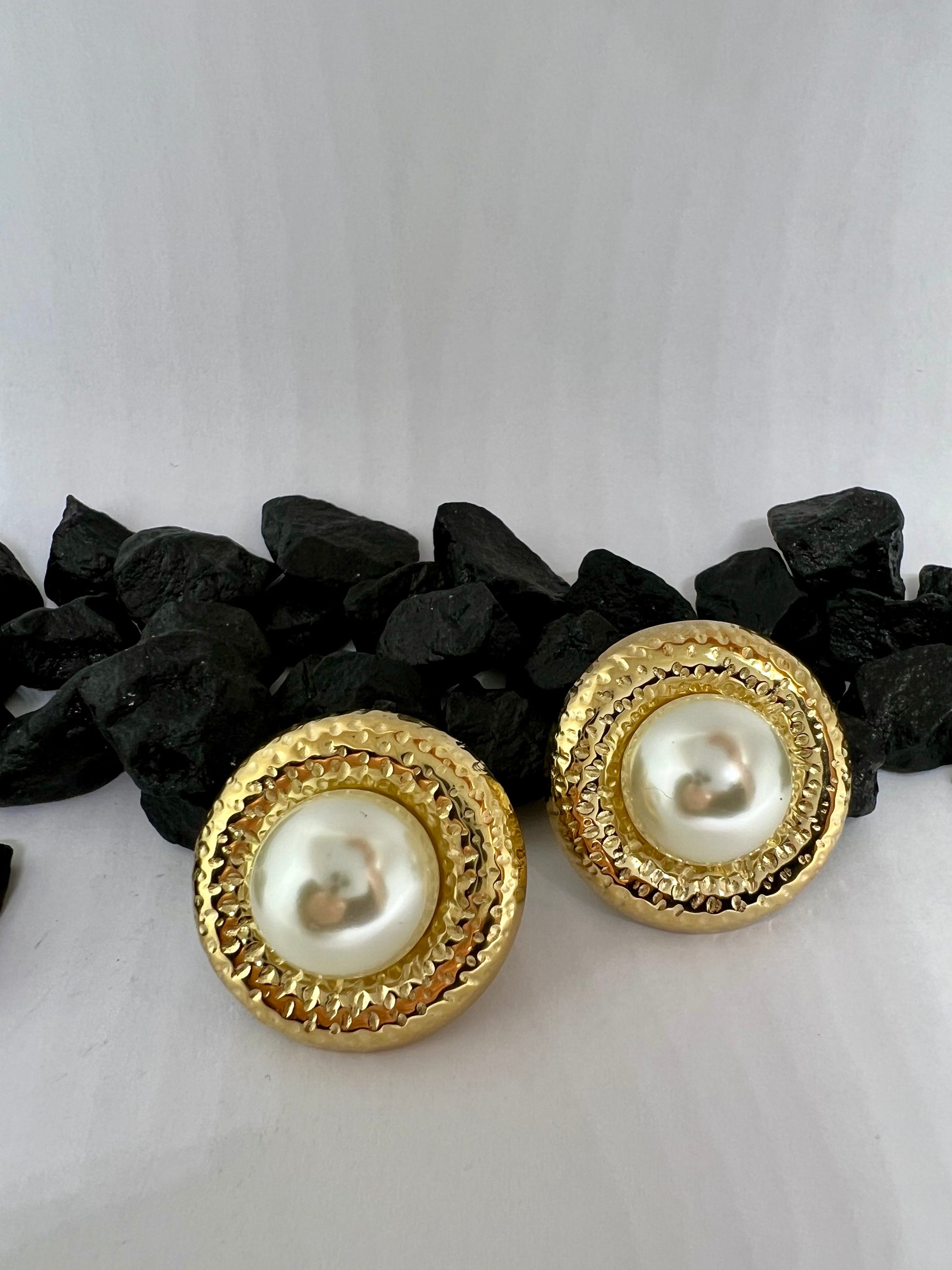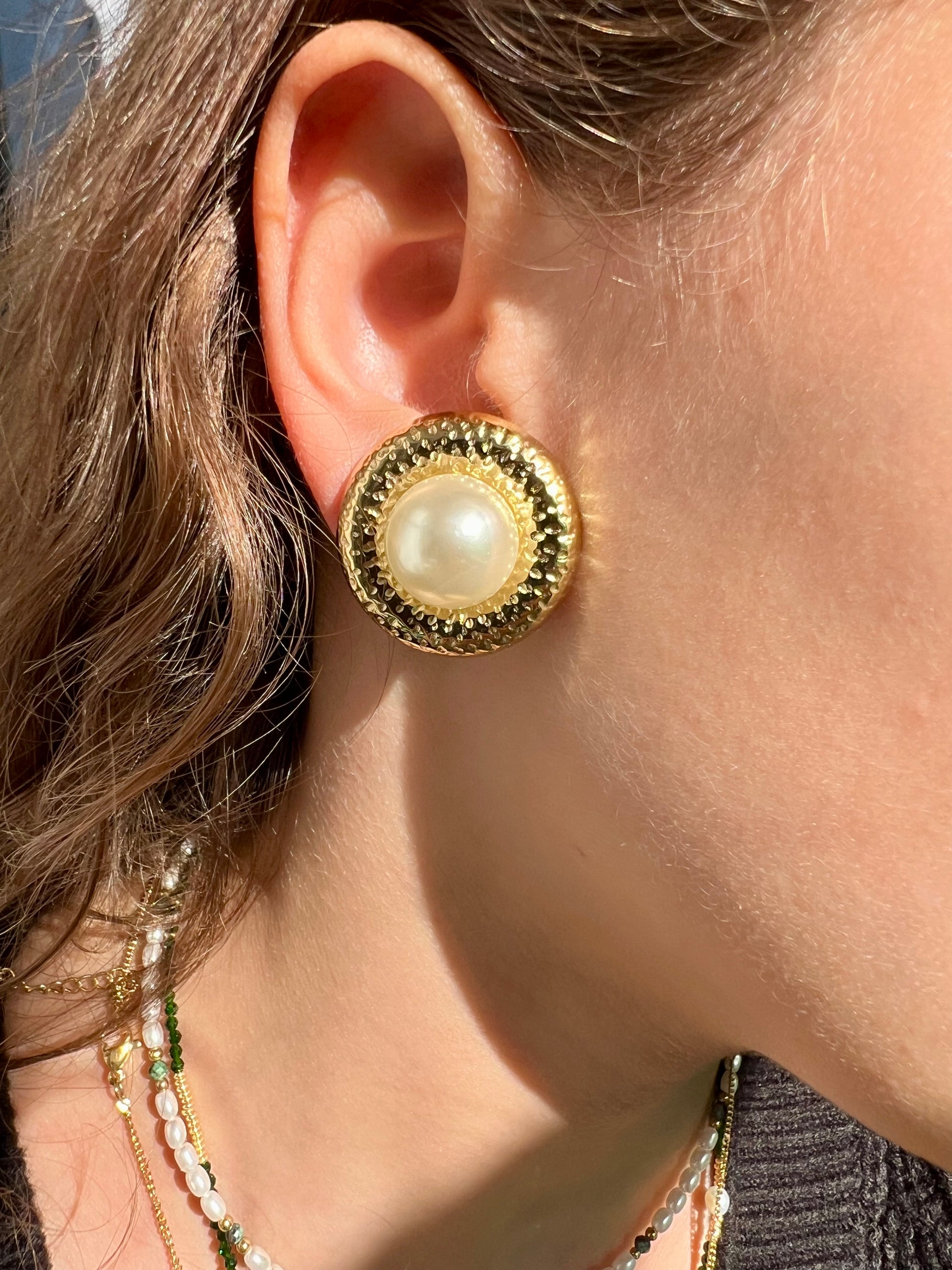✧ Boucles dorée clips en acier inoxydable et perle en résine.