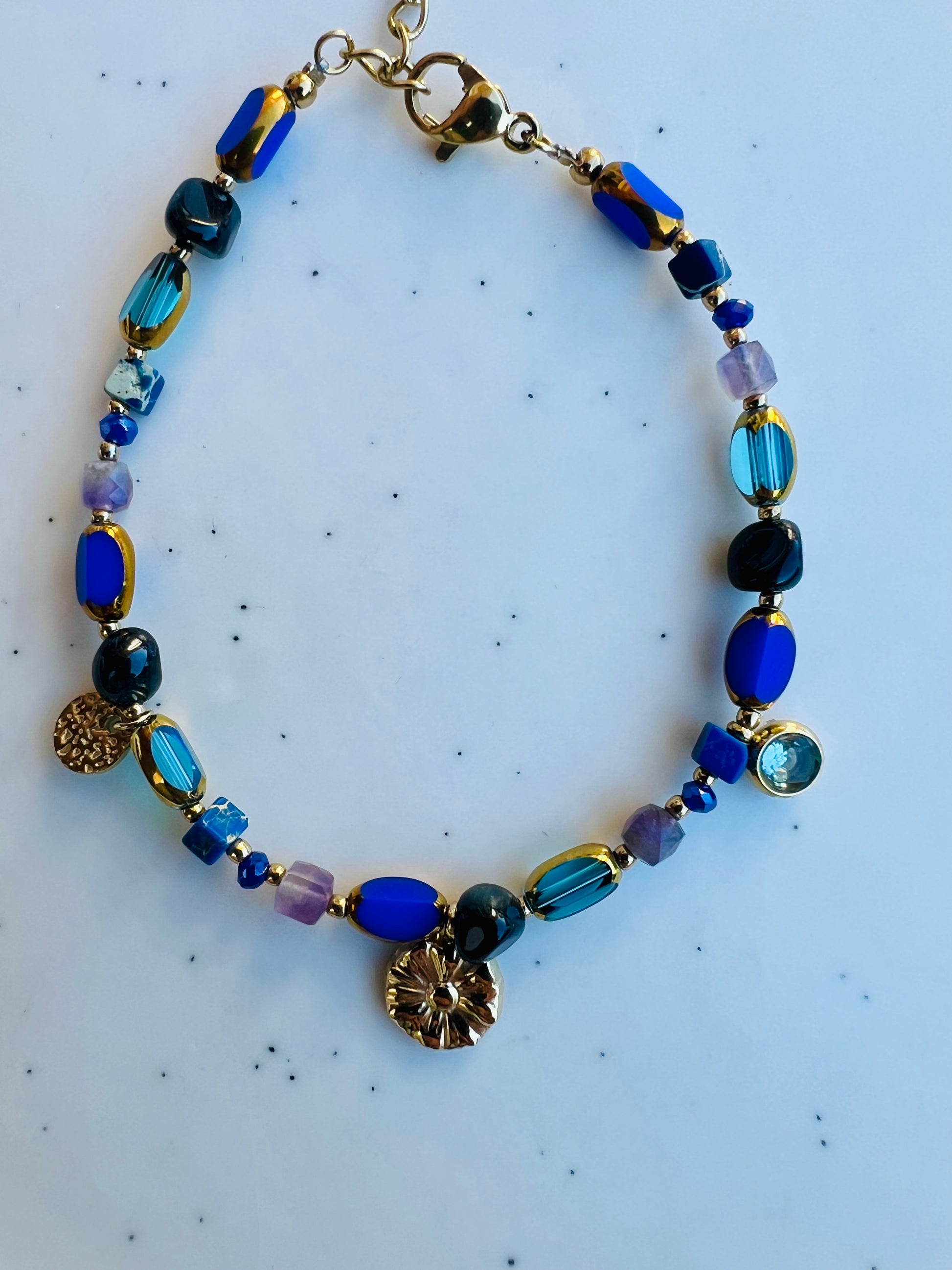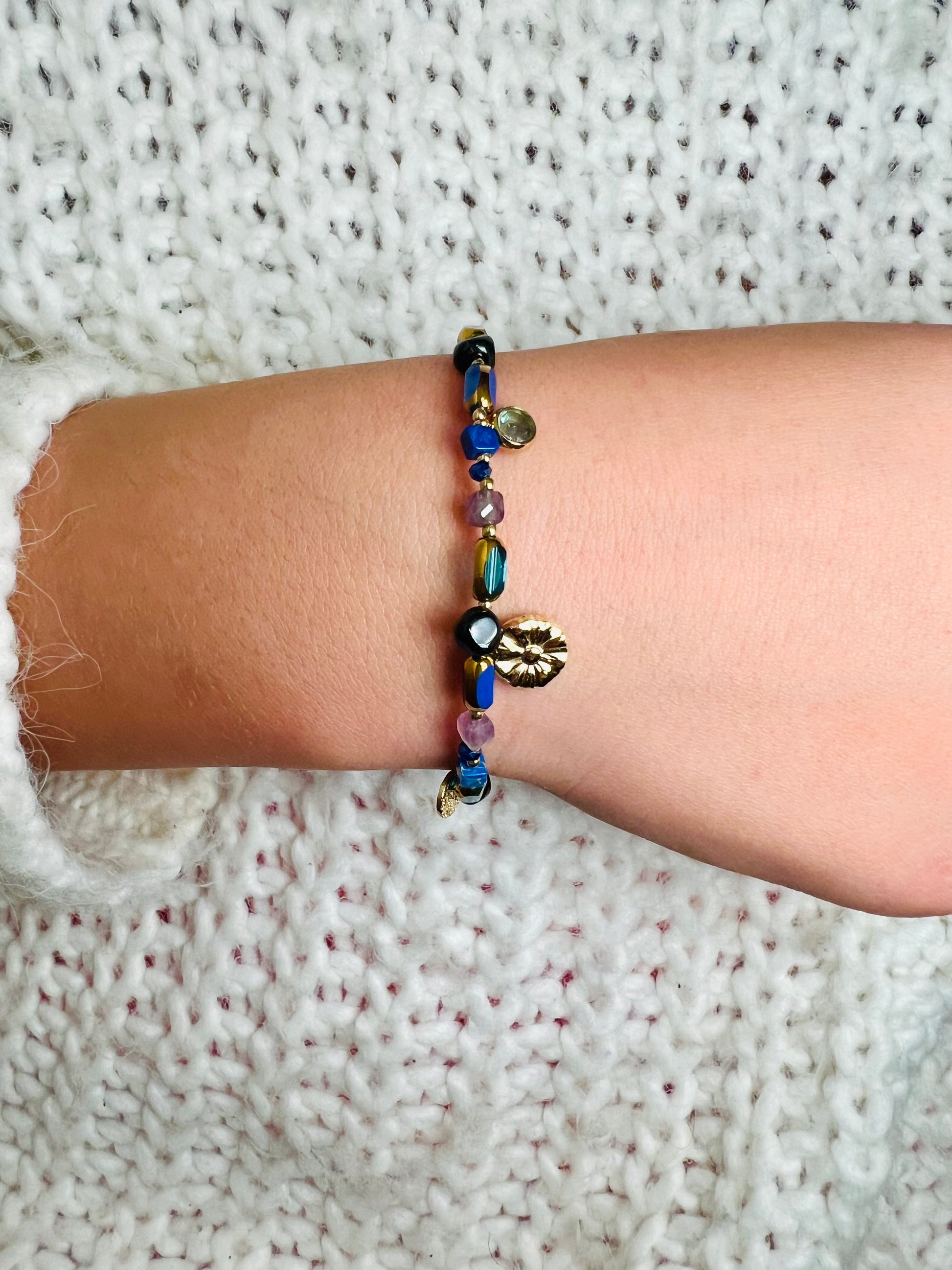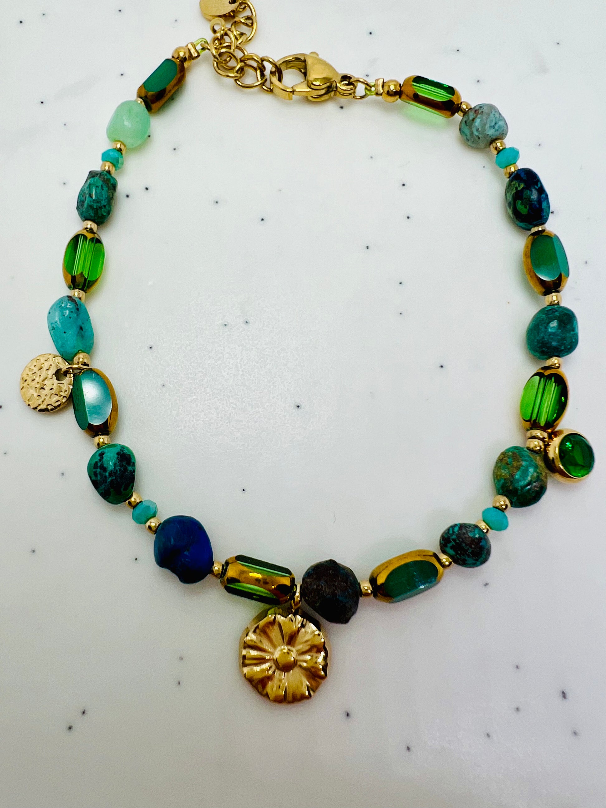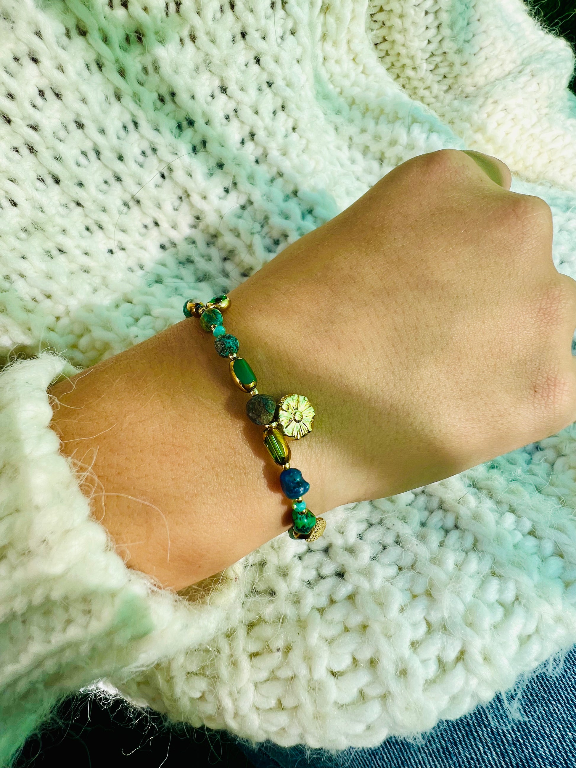 ✧ Bracelet doré en acier inoxydable, perles et pierres naturelles