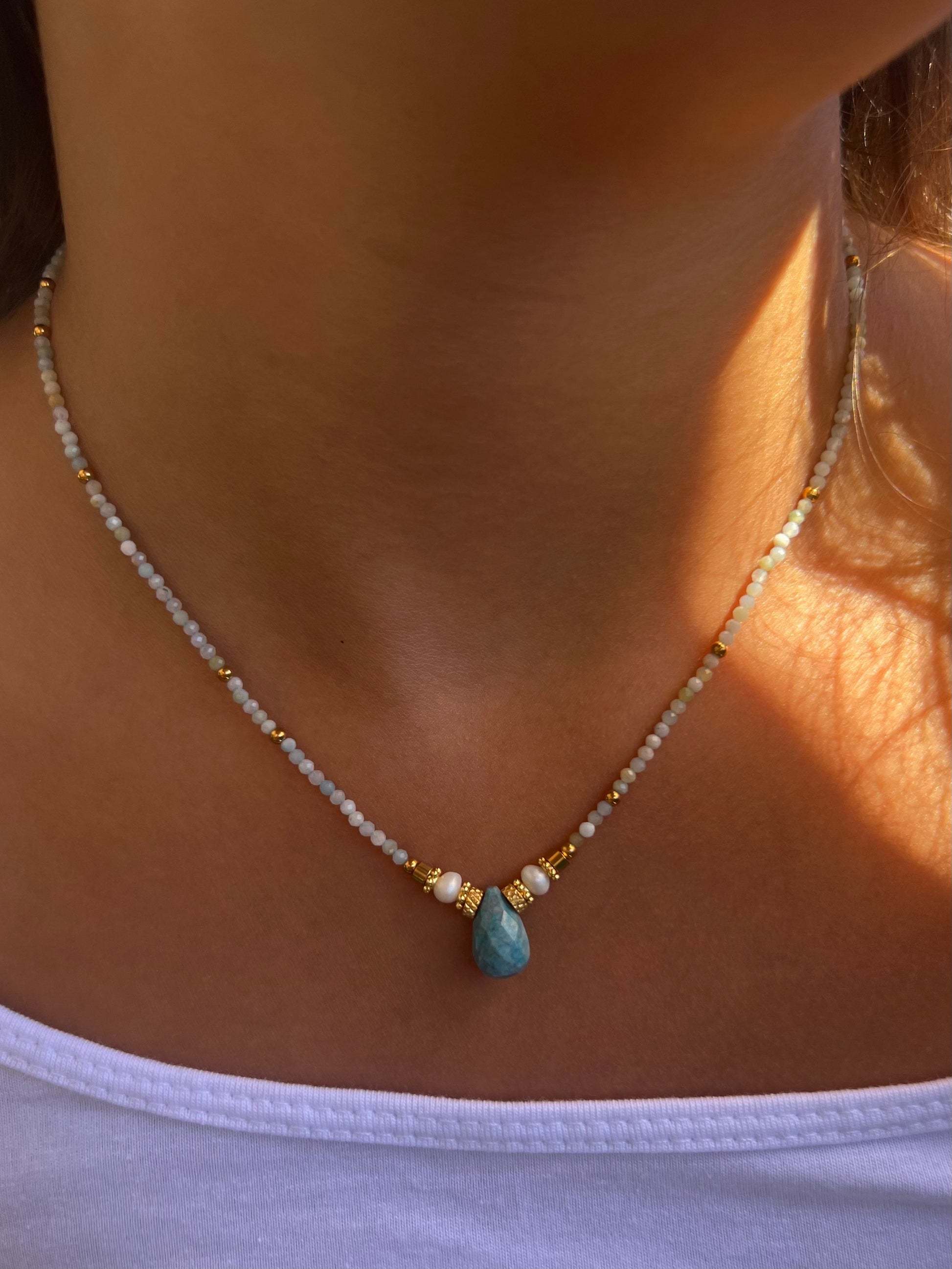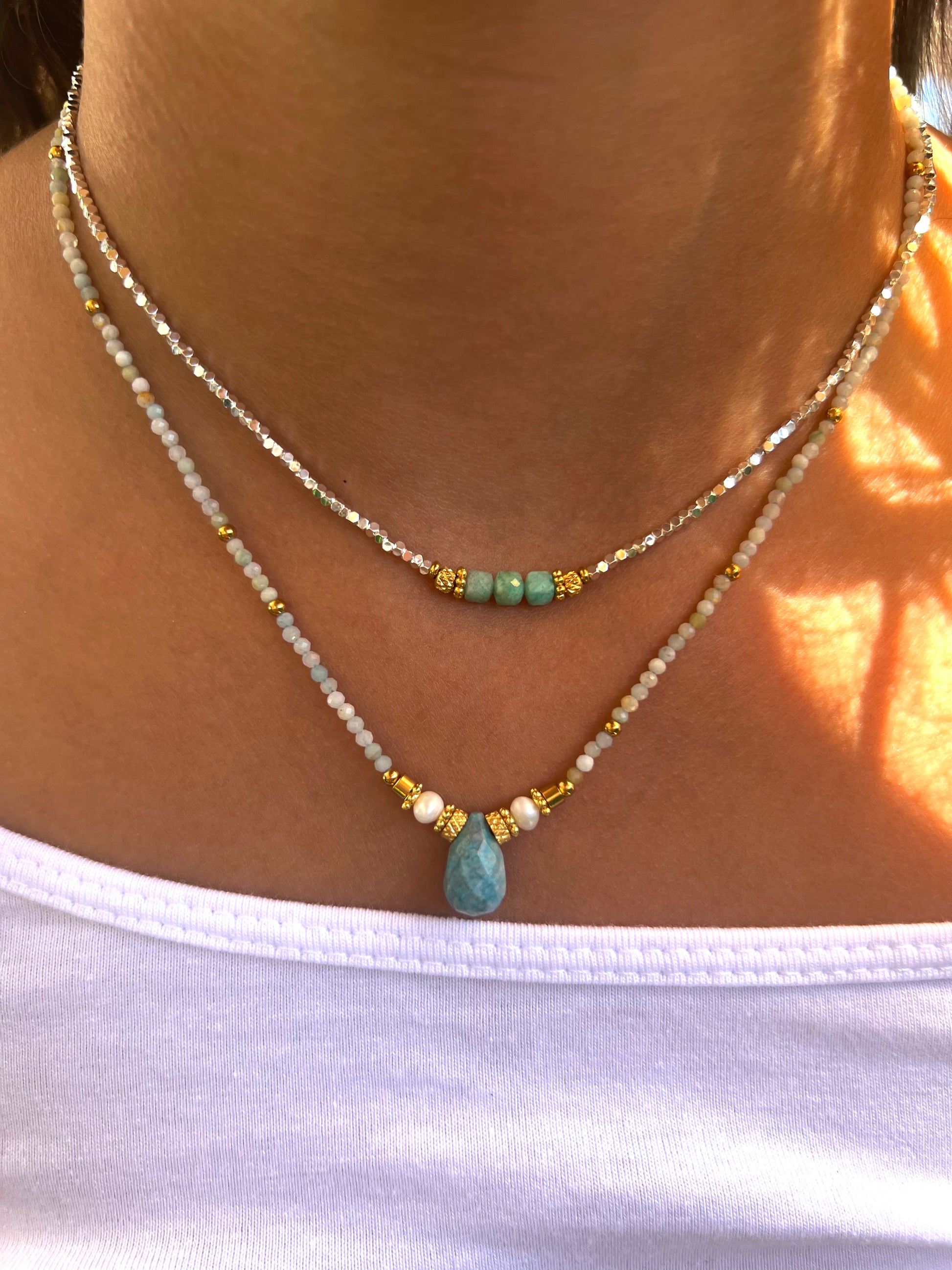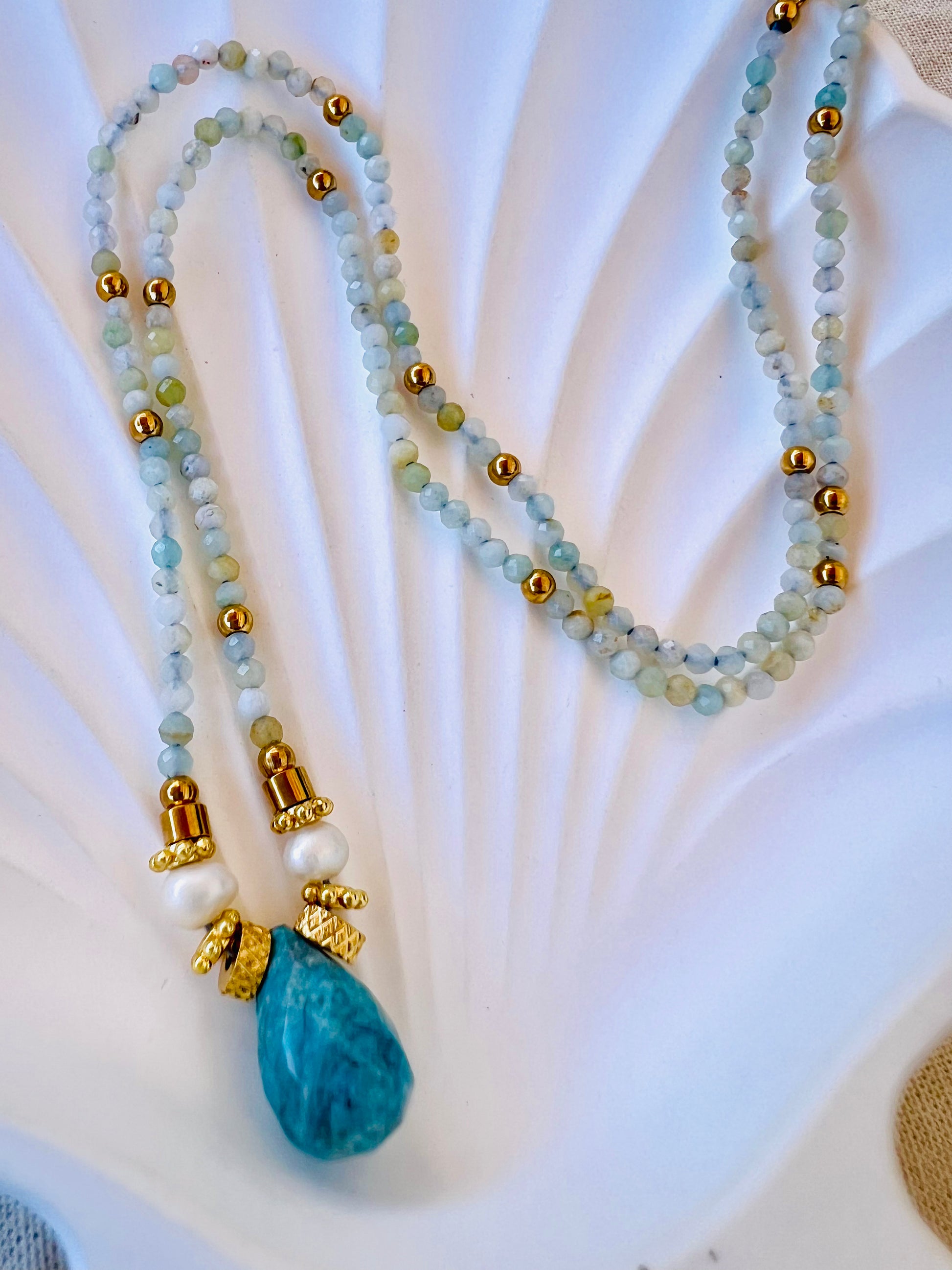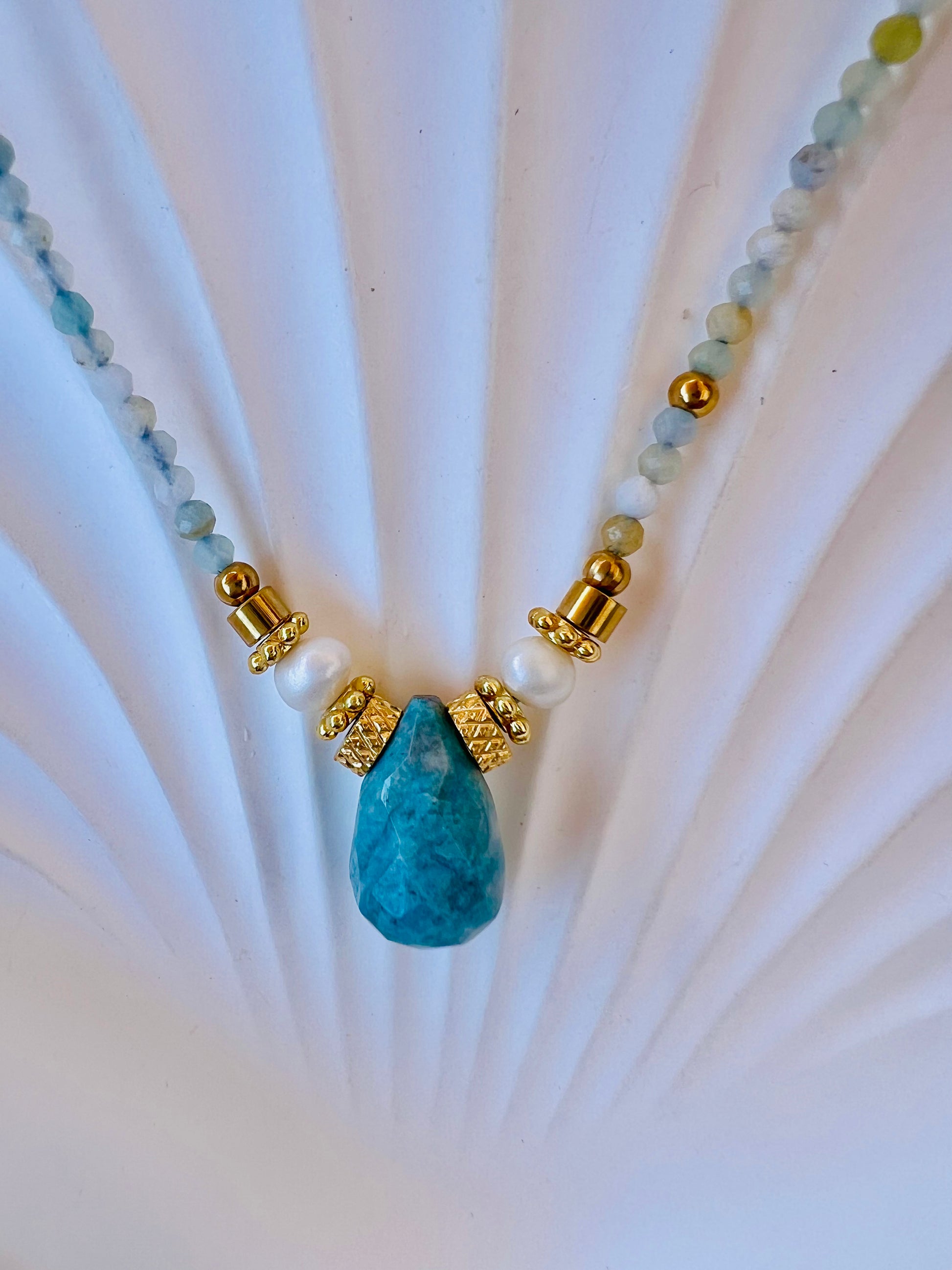✧ Collier perlé en amazonite, perles d'eau douce et apatite.