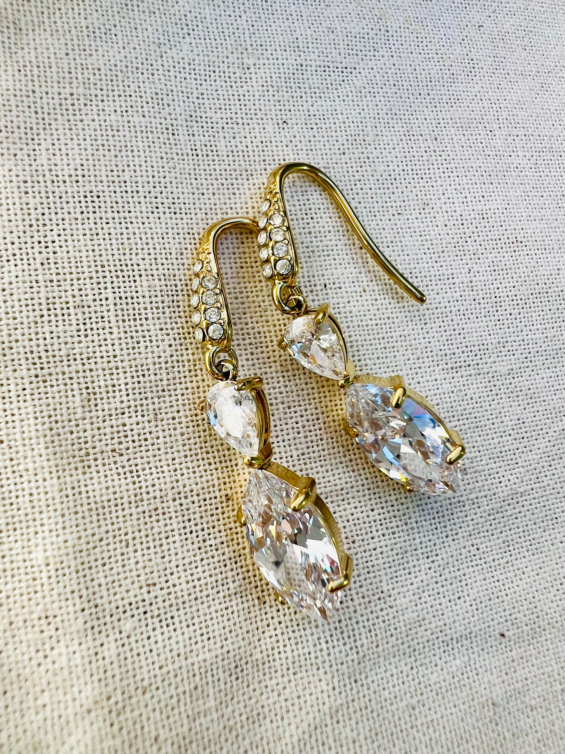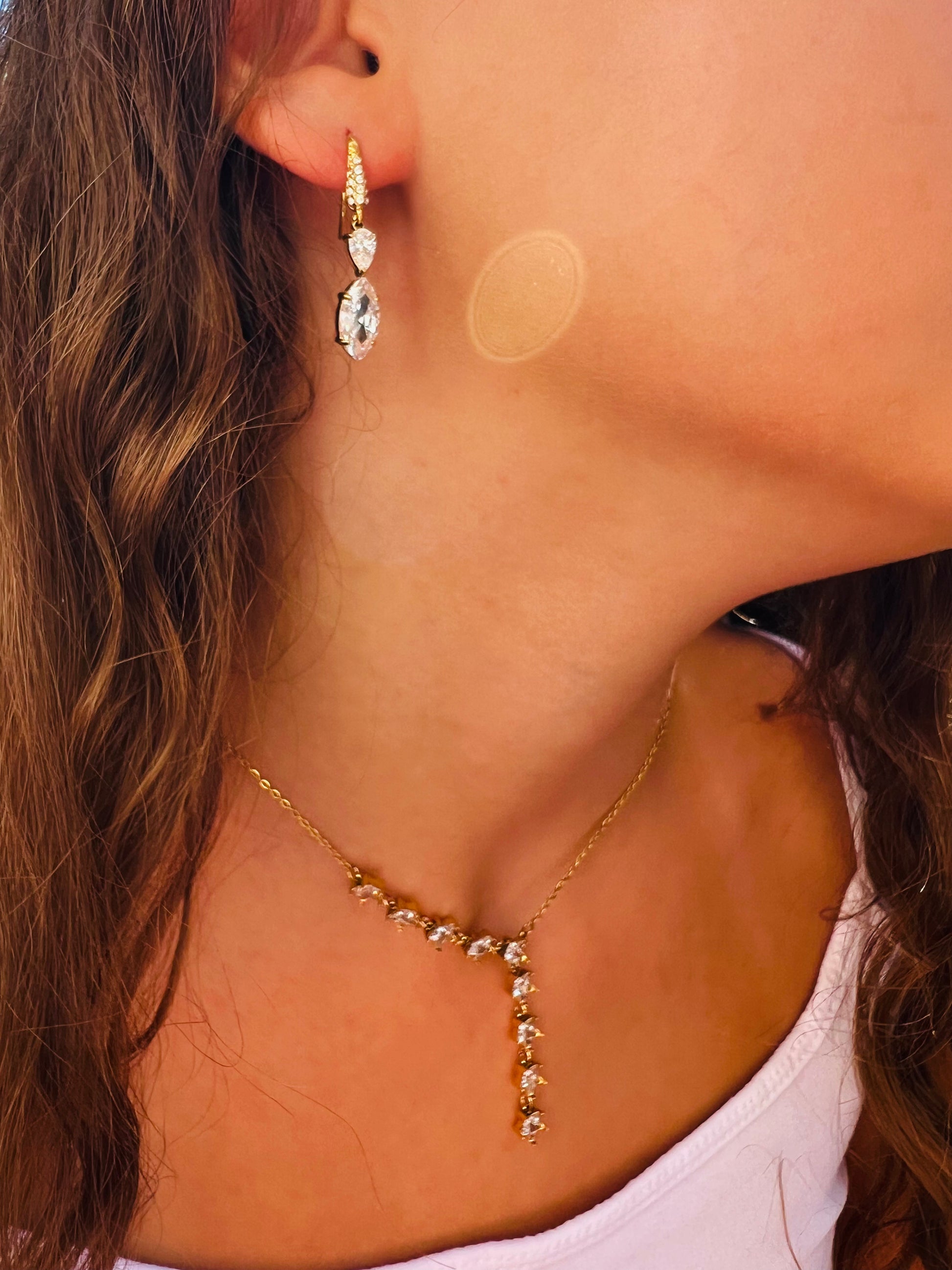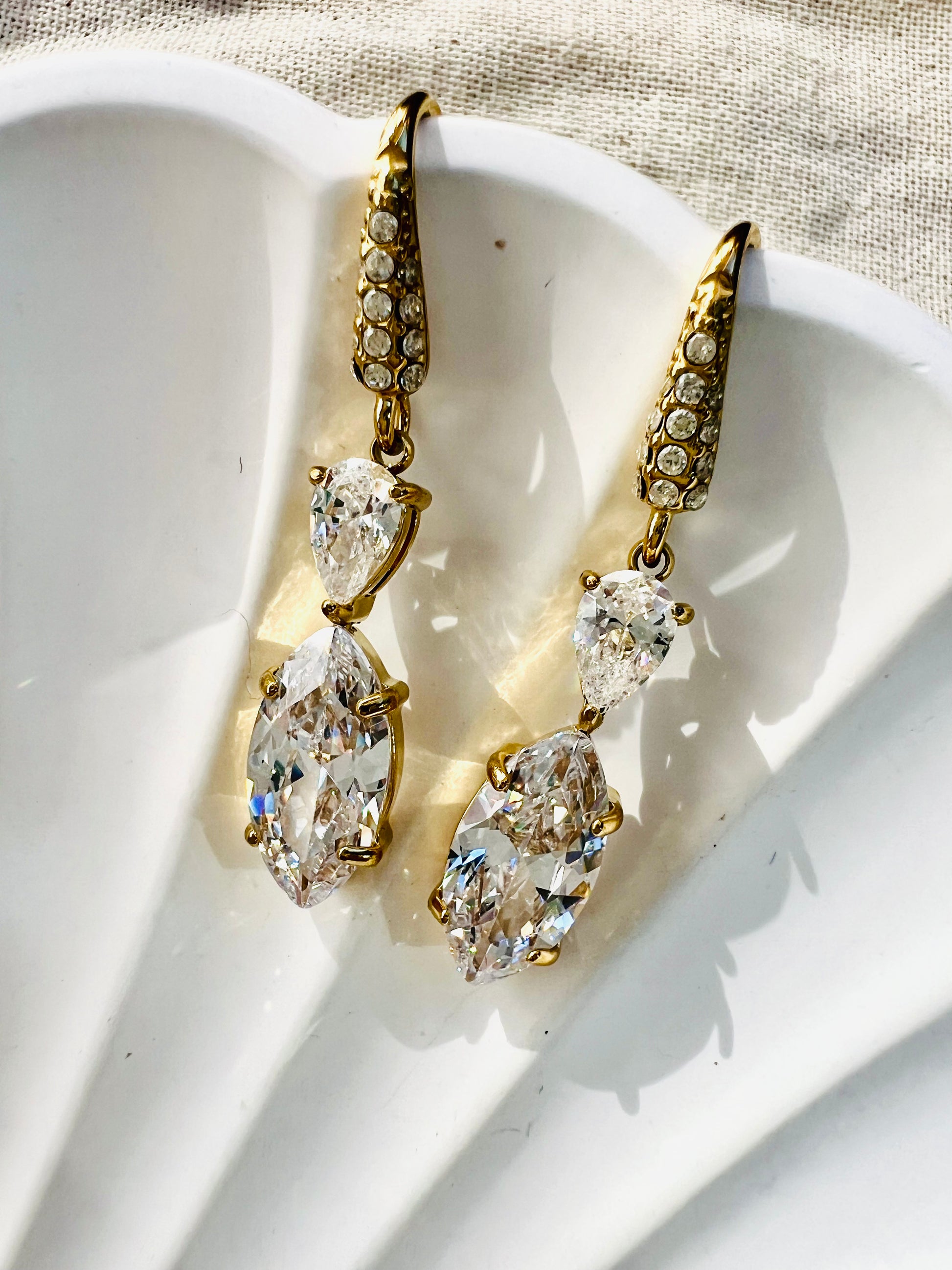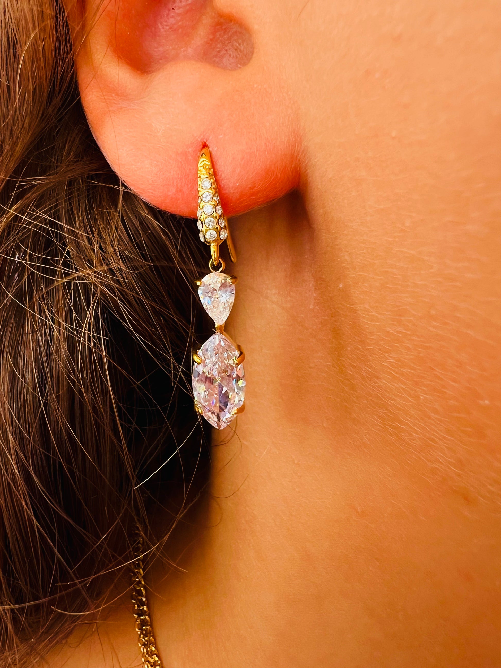 Les boucles Valentina sont des bijoux pendants ultra-brillants ornés de pierres en oxyde de zirconium. Leur éclat intense sublime chaque tenue, de jour comme de nuit ✨.