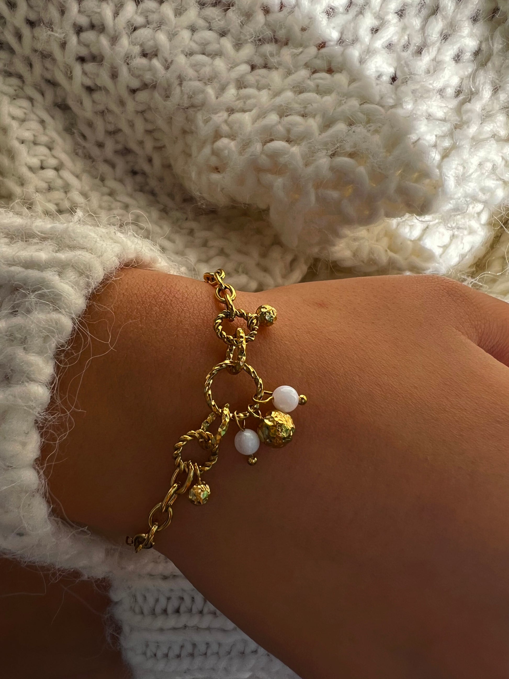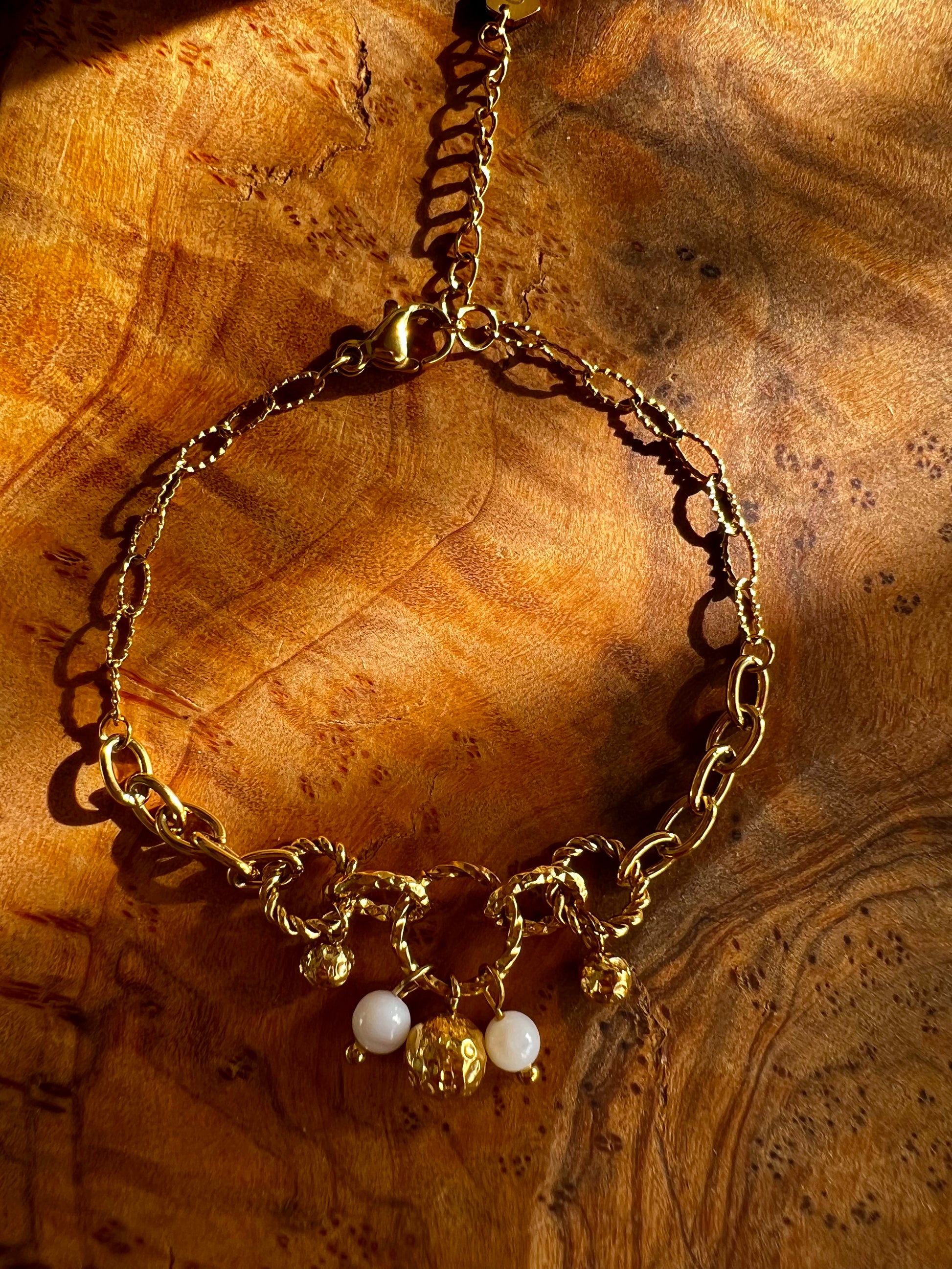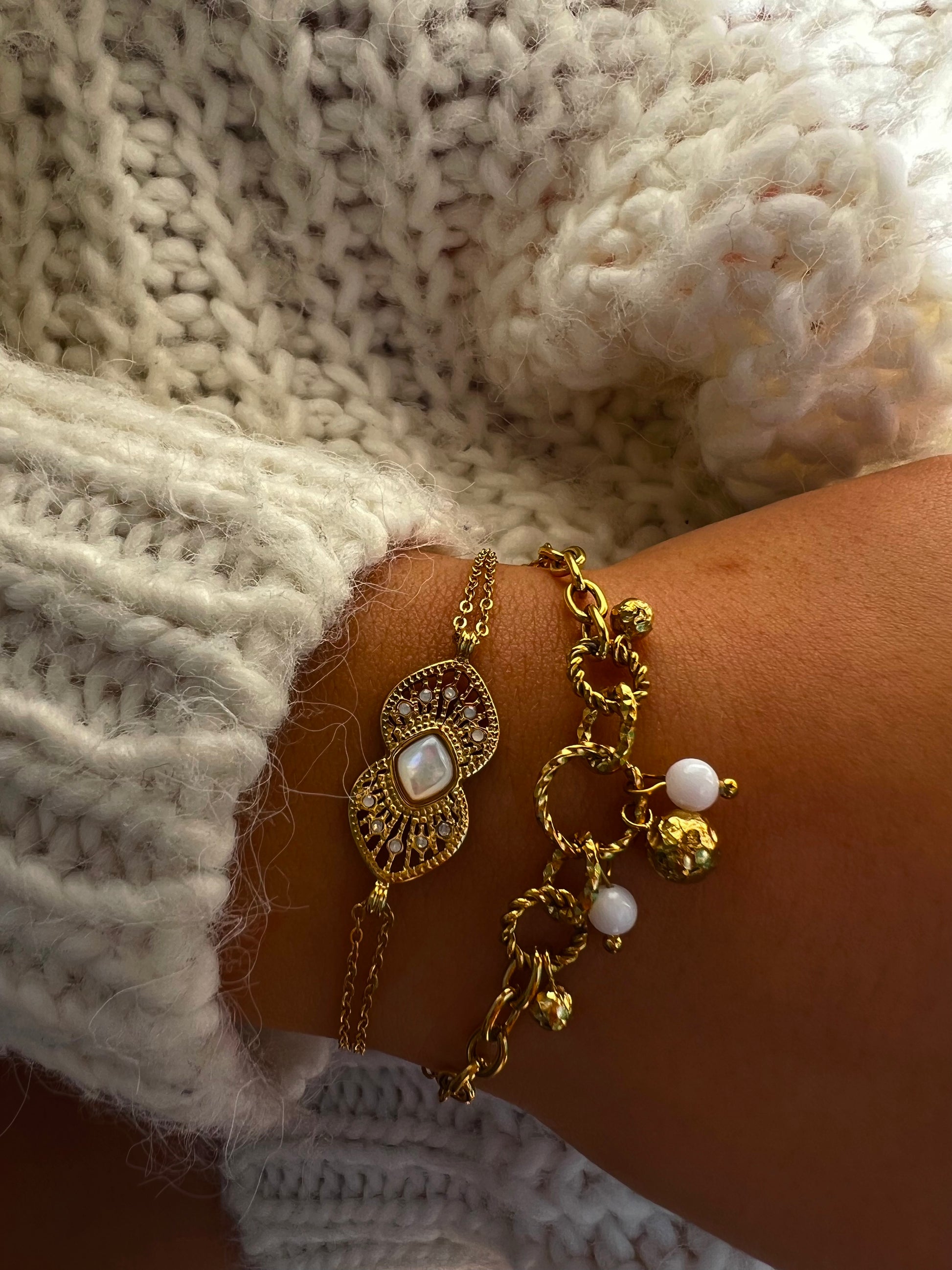 ✧ Bracelet cordon en acier inoxydable et perles en coquillage.