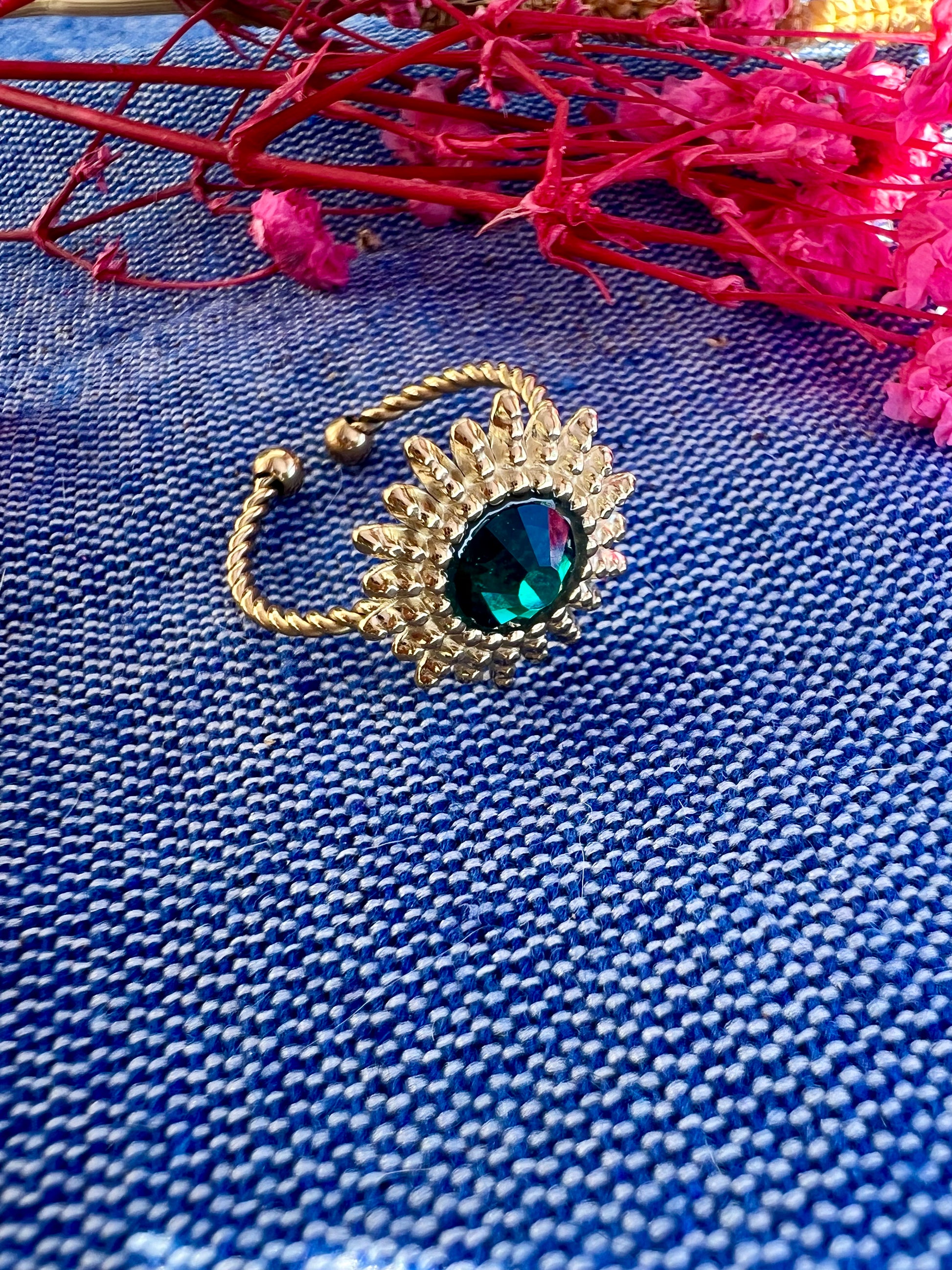 ✧ Bague dorée en acier inoxydable ornée de cristaux.